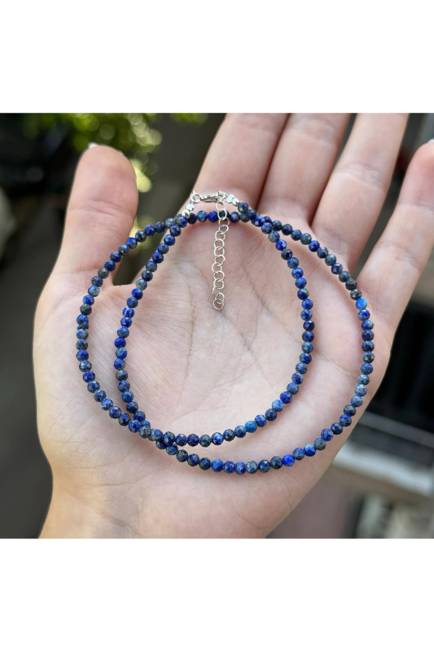 Taş-Mir Doğal Lapis Lazuli Taşı Faset Kesim Kolye 3 mm