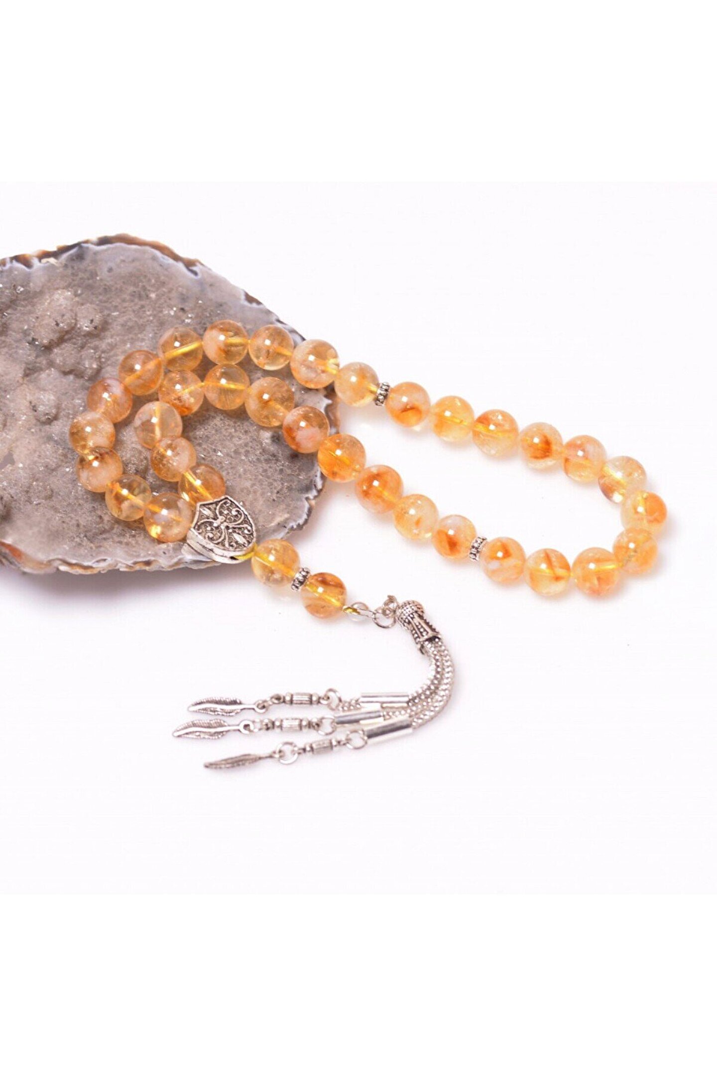Değerli müşterilerimiz, Son zamanlarda bazı satıcıların düşük kaliteli ürünleri aynı ürün adıyla gönderdiğini fark ettik.; Sizlere her zaman en yüksek kaliteyi sunabilmek için, yalnızca kendi resmi mağazamızdan alışveriş yapmanızı tavsiye ederiz.; Orijinal ürünlerimizi güvenle satın almak için lütfen mağaza adımızı kontrol etmeyi unutmayın.; Saygılarımızla, Taşmir Bu Üründe Kullanılan Doğal Taş: Sitrin Taşı ; Bu Üründe Kullanılan Doğal Taş Boyutu: 8 mm ; Ürünün Ortalama Uzunluğu:İmameden Uzunluk: 21 cmToplam Uzunluk: 30 cm;Not: Ürünler doğal taş olduğu için renk tonları küçük farklılıklar gösterebilir.; Kullanılan metal aksam modelleri ve püskül ucundaki şekiller stok durumuna göre farklılık gösterebilir.