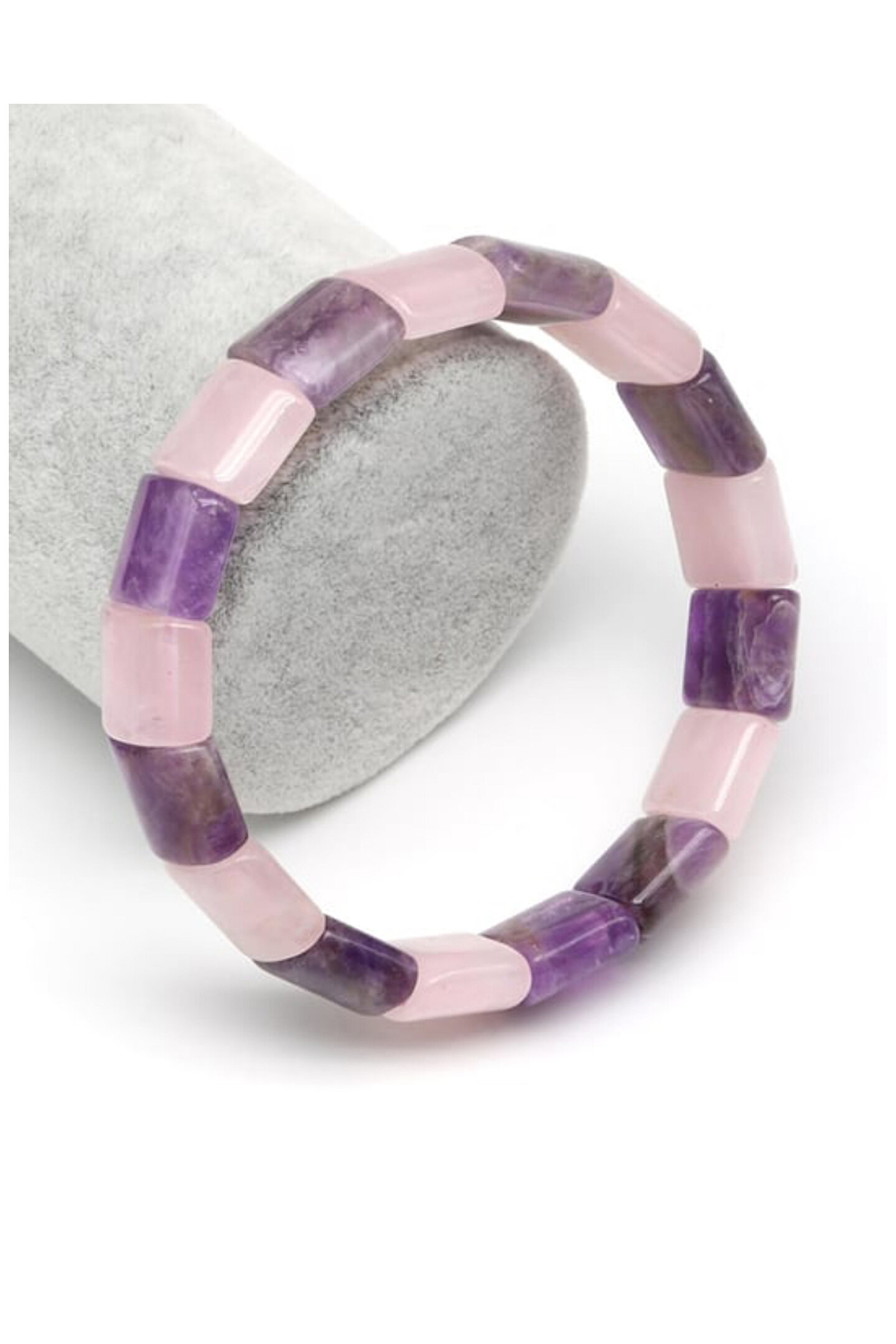 Tane Boyu 12 x 15 mm.; ;Ağırlık 42 gr.; ;Uzunluk 20 cm.;TÜM TAŞLARIMIZIN ORJİNALLİĞİ TAŞMİR FİRMASI GÜVENCESİ ALTINDADIR!;AMETİST - AMETHYST (Pozitif Enerji Taşı)Ametist taşı, sahip olduğu enerji sayesinde bulunduğunuz ortamın negatif enerjisini kısa sürede yok ettiği düşünülen bir taştır.; Bu sebeple meditasyon taşları içinde en çok tercih edilen doğal taşlardan biri olmuştur.; Antik çağlardan bu yana zararlı alışkanlıklardan arınmak için yardımcı taş olarak kullanıla gelmiştir.; Uyumlu Burçlar ; Balık, Koç, Yengeç, Akrep ve YayUyumlu Çakralar ; 6.Alın Çakrası (Üçüncü Göz) ve 7.Taç ÇakrasıPEMBE KUVARS - PINK QUARTZ (Sevgi Taşı)Pembe Kuvars taşı, kalbinizi hastalık ve travmalara karşı korur.; Mutluluk duygusu verir.; Ametist ile uyumlu kullanıldığı zaman enerjinizi arttırır ve aşk duygunuzu güçlendirir.; Uyumlu Burçlar ; Koç, Boğa, İkizler, Yengeç ve BaşakUyumlu Çakralar ; 5.Boğaz Çakrası ve 4. Kalp ÇakrasıDoğal Taş Nasıl Arındırılır?Tütsüleme: Tütsü kullanarak yapılan enerjetik temizlik, taşın üzerindeki negatif enerjiyi dağıtmak için etkilidir.; Bir elinize taşı bir elinize tütsüyü alıp dumanıyla 15-20 saniye boyunca taşınızı temizleyebilirsiniz.; Akan Su Altında Temizleme: Doğal taşların akan su altında tutulması, üzerlerindeki enerjik kirliliği giderir.; Akar suyun altında 2-3 dakika yıkayarak taşınızı temizleyebilirsiniz.; Toprağa Gömme: Doğal taşlar, doğanın enerjisini emmek için toprağa gömülebilir.; Bu yöntem, taşın enerjisinin dengelenmesine yardımcı olur.; Taşınızı 1 gün toprağa gömerek temizleyebilirsiniz;
