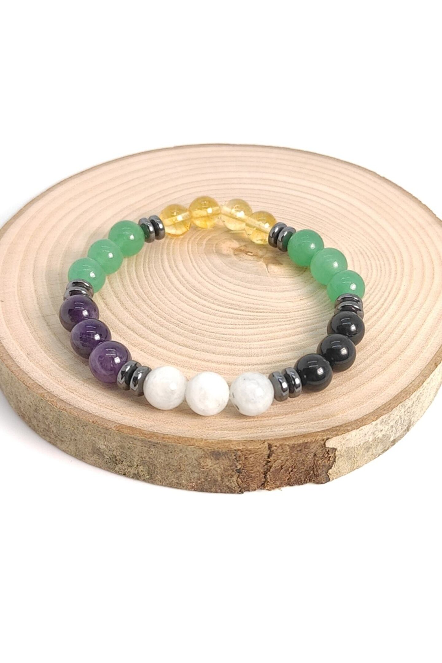 - Doğal taş kullanımı sayesinde, her bileklik benzersiz ve otantik bir görünüm sunar; - Ay taşı, ametist, siyah turmalin ve sitrin gibi enerji taşı türleri, bilekliğe şık bir dokunuş katar; - Enerji bilekliği olarak tasarlanmış bu bileklik, kişisel enerjinizi dengelemenize yardımcı olabilir; - Doğal taşların sunduğu zarif ve doğal güzellik, günlük kullanım için idealdir;
