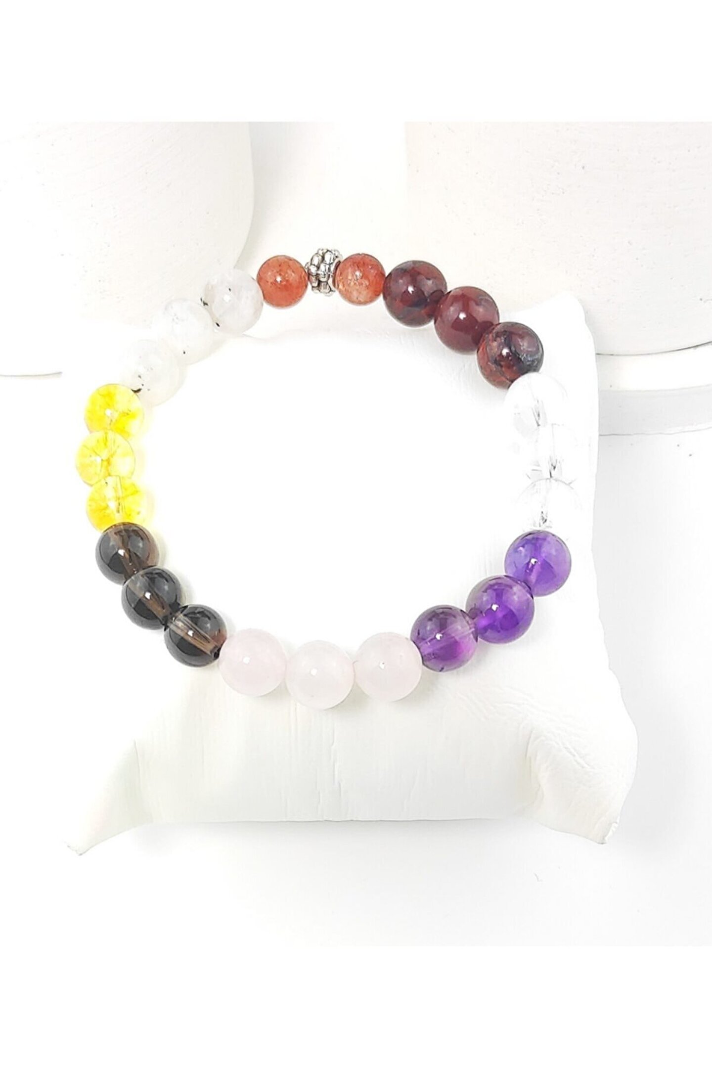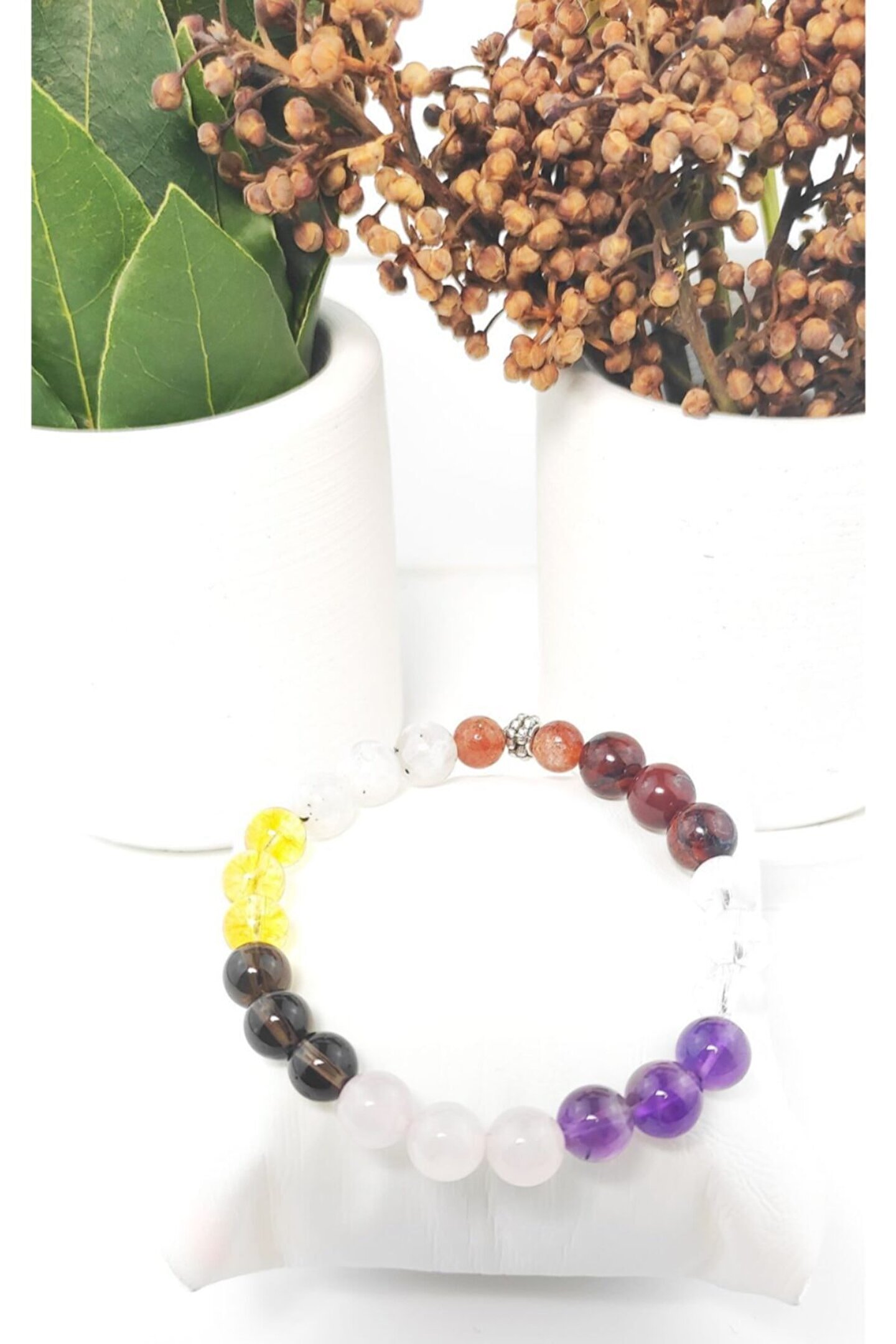 Doğal taş kullanımı sayesinde her bileklik, benzersiz ve otantik bir görünüm sunar; Gül kuvars, dumanlı kuvars, sitrin ve aytaşı gibi farklı türdeki doğal taşların birleşimiyle zenginleştirilmiş tasarım, şıklığınızı tamamlar; Güneştaşı kristal kuvars, bilekliğinize enerji ve pozitiflik katarken, aynı zamanda zarif bir ışıltı sağlar; Ametsik bileklik, hem günlük kullanım hem de özel günler için ideal bir aksesuar seçeneği olarak öne çıkar;