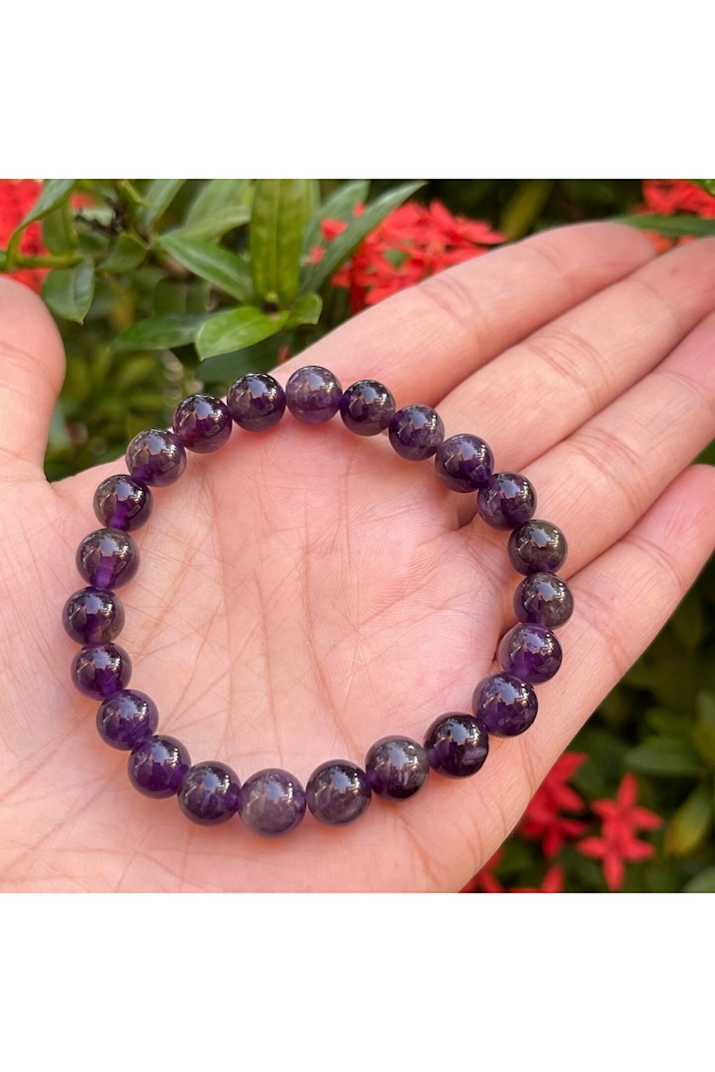 Doğal ametist taşı kullanılarak üretilmiş, şıklığı ve zarafeti bir arada sunan bileklik; AAA kalite orijinal ametist taşı ile tasarlanmış, her parça benzersiz ve özgün bir görünüm sağlar; Doğal taş materyali sayesinde, bilekliğin her hareketinde doğanın saf enerjisini hissedersiniz; El işçiliği ile tamamlanan bu bileklik, hem günlük kullanım hem de özel günler için ideal bir aksesuar seçeneği sunar;