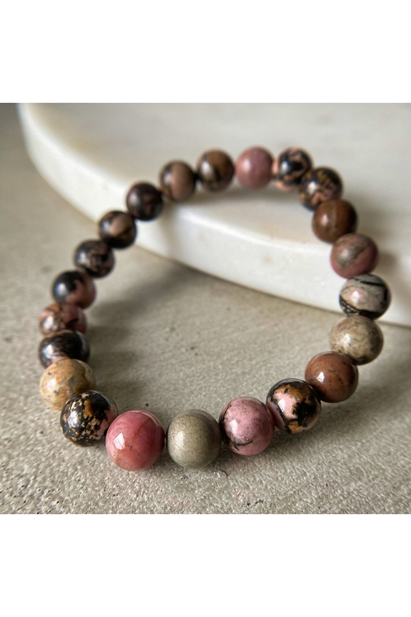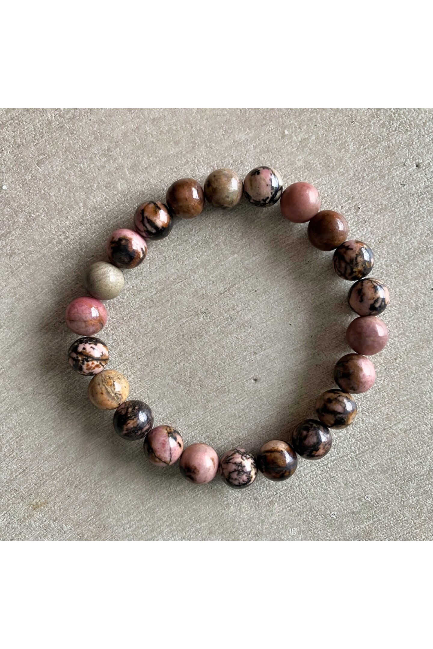 - Doğal taş bileklik, şıklığınızı tamamlayacak zarif bir aksesuardır; - Rodonit taşı, benzersiz desenleri ve renkleriyle dikkat çeker; - Doğal taş materyali sayesinde her bileklik benzersizdir ve doğanın güzelliklerini üzerinizde taşımanızı sağlar;