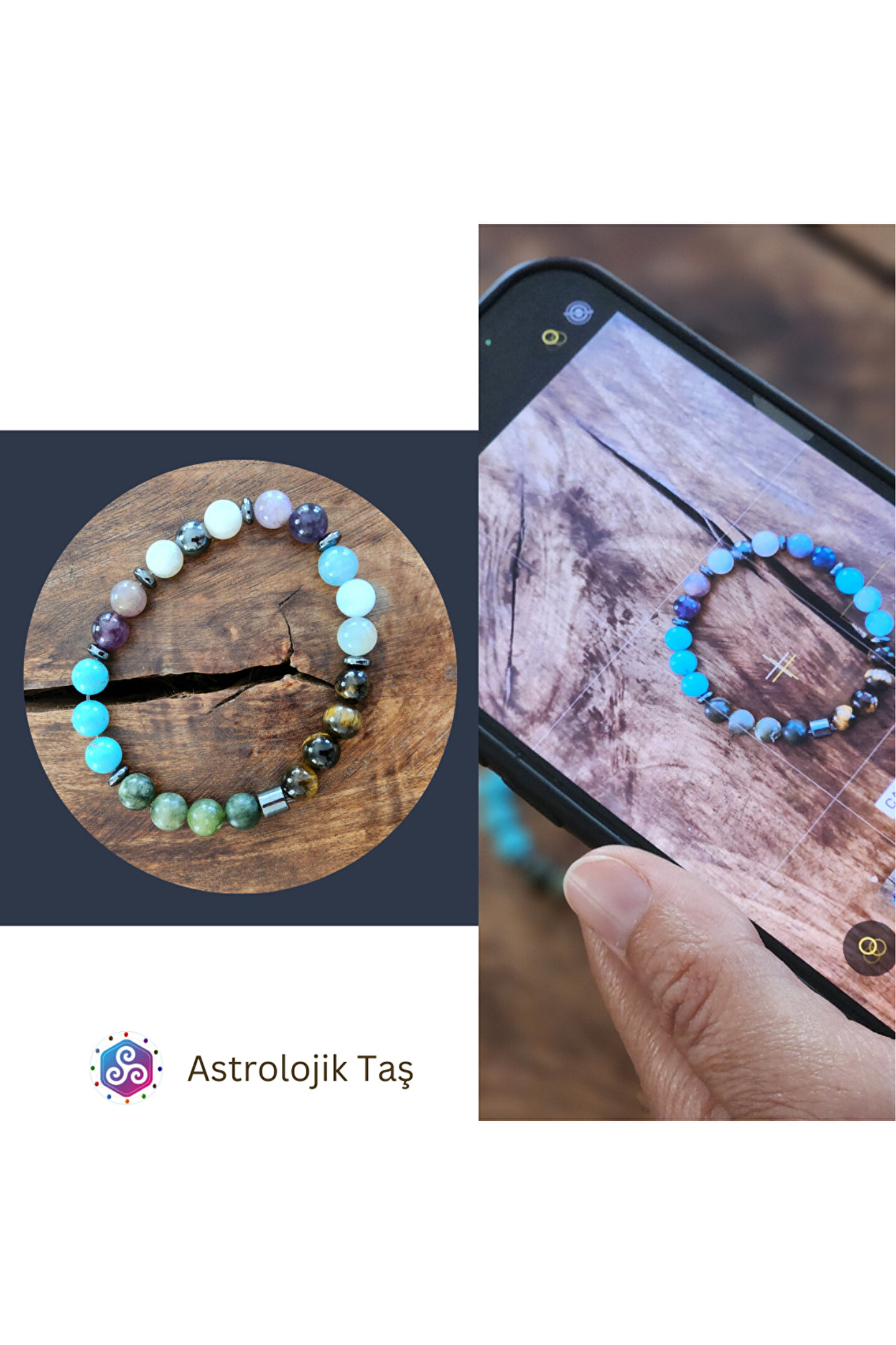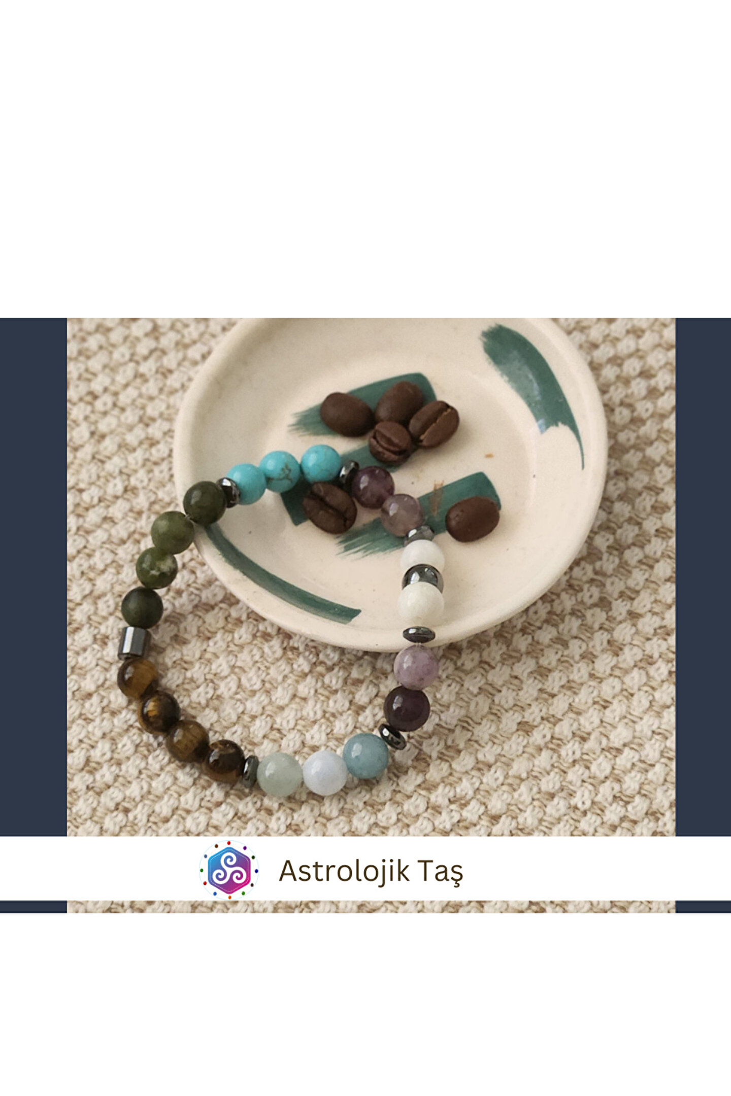 Migren ve Baş Ağrısı Bilekliğinde Ametits, Kaplan Gözü, Yeşim Taşı,Akumarin, Turkuaz Firuze Taşı, Ay Taşı kullanılmıştır. Doğal Taş uzmanlarımızve Astroloğumuzun tavsiye ettiği taşlardır.