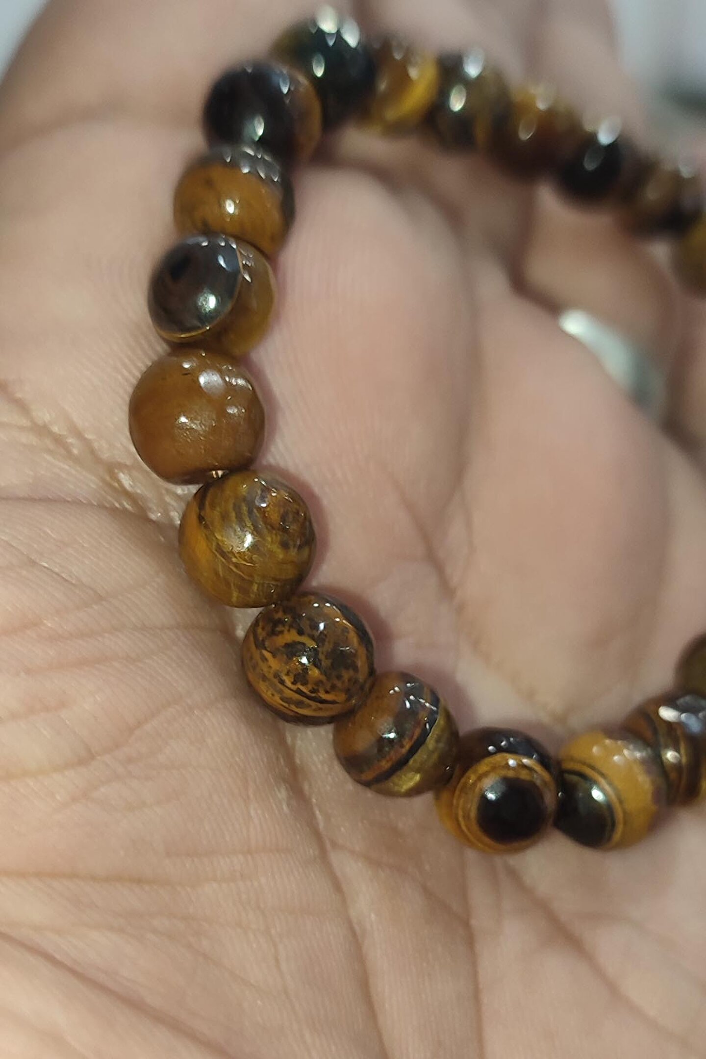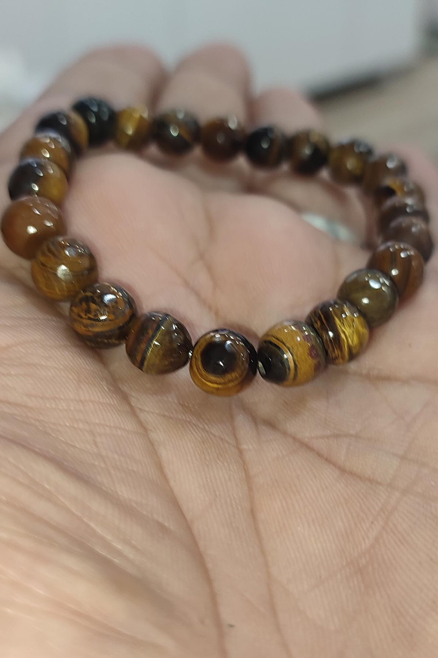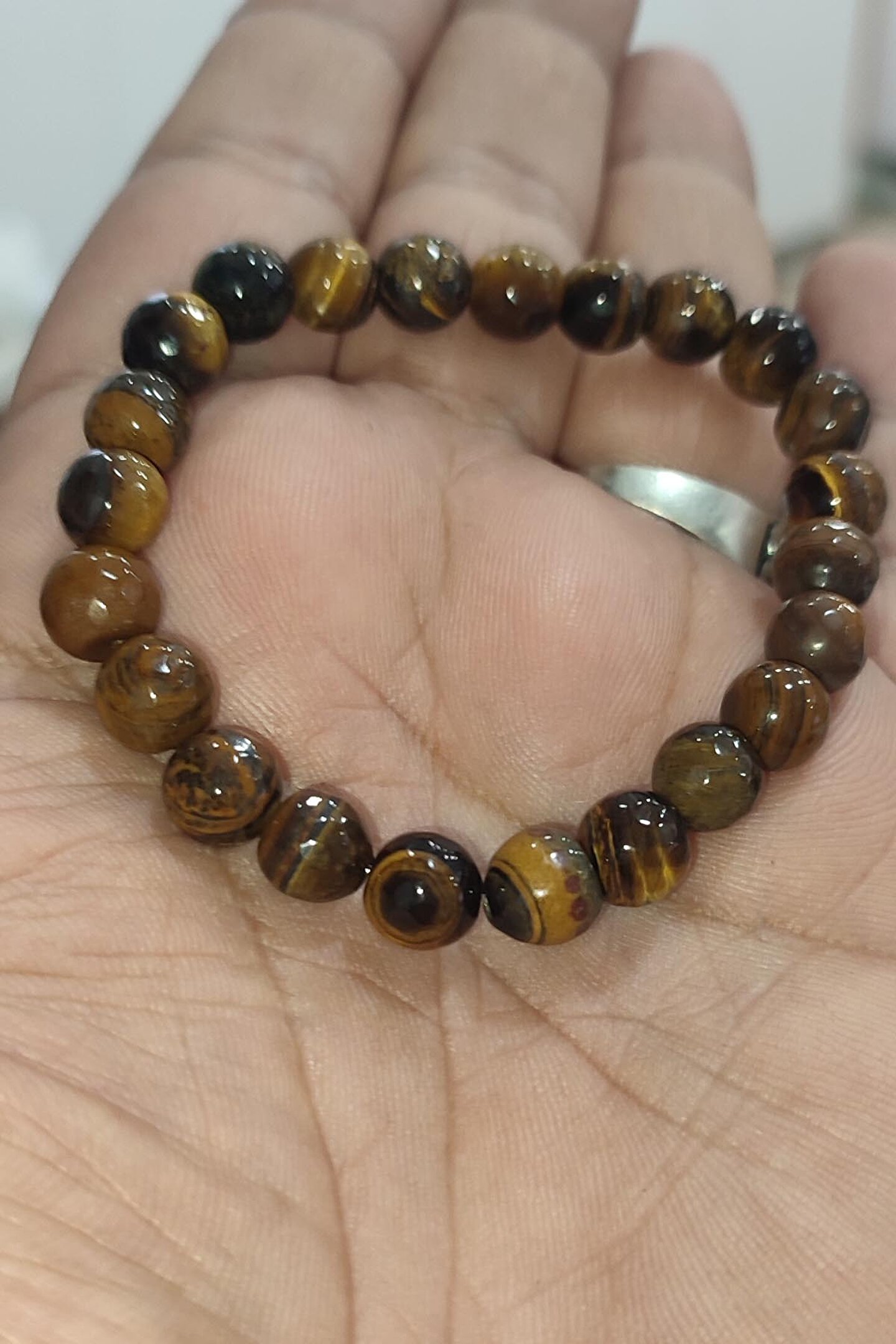 Doğal Kaplangözü taşı kullanılarak üretilmiş, her biri benzersiz ve özgün bir görünüm sunar; 8mm boyutundaki faset kesim, ışığı mükemmel bir şekilde yansıtarak bilekliğin parlamasını sağlar; Doğal taş kullanımı sayesinde, her bileklik eşsiz bir dokunuşla öne çıkar ve doğallığıyla dikkat çeker; Faset kesim tekniği ile işlenmiş taşlar, bilekliğe sofistike bir parlaklık kazandırır ve göz alıcı bir etki yaratır;