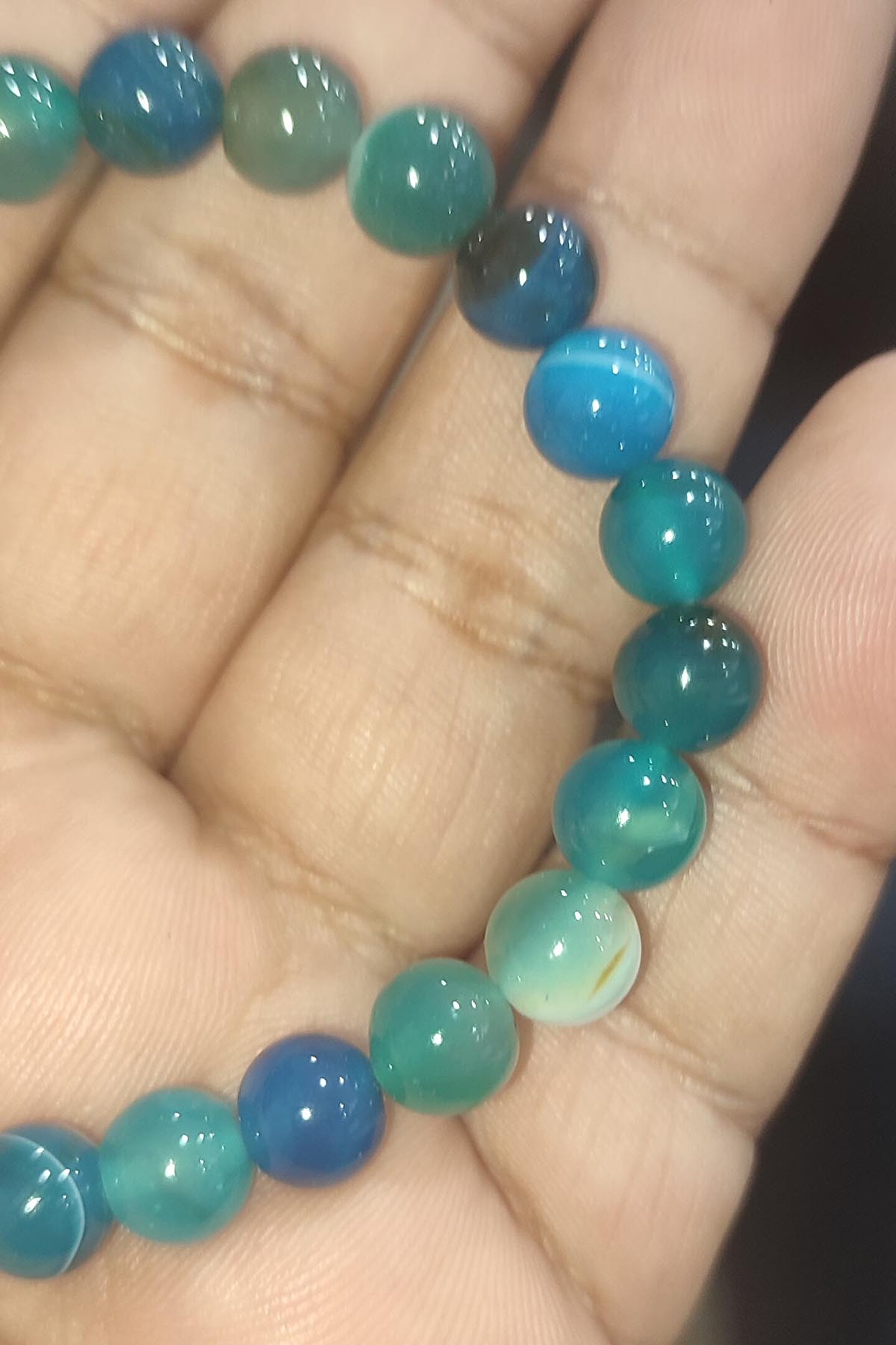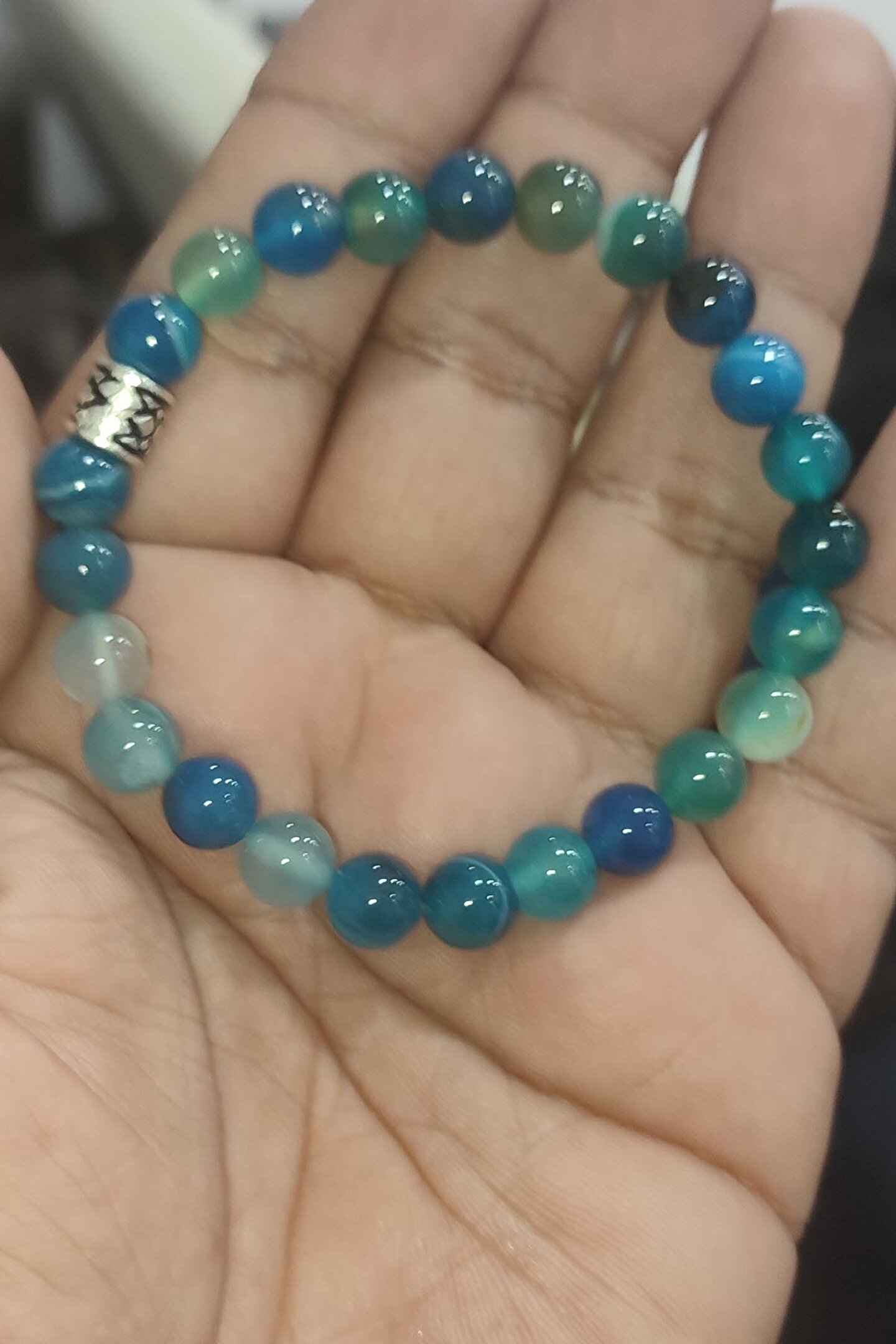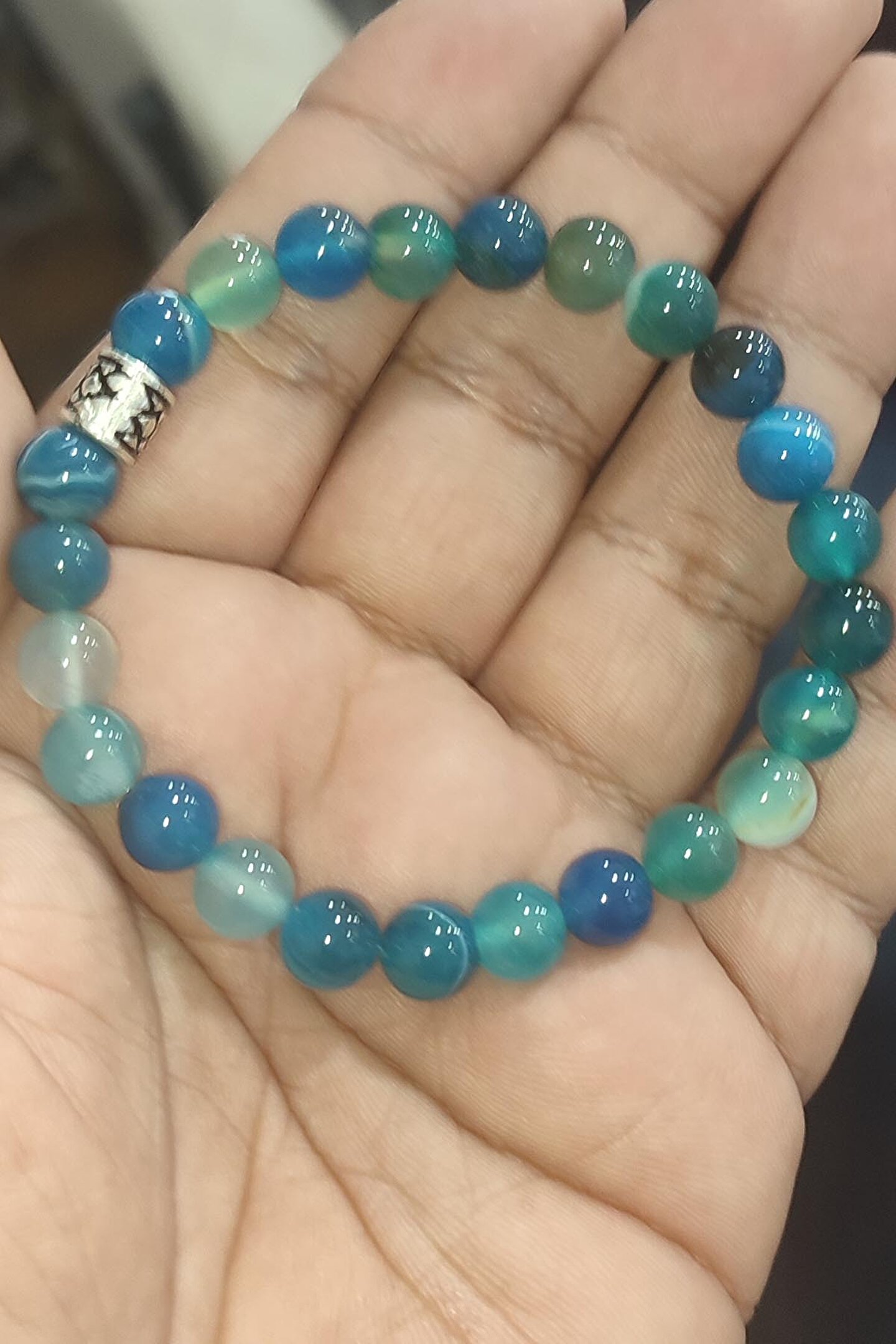 Doğal akik taşı kullanılarak üretilmiş, her bir bileklik benzersiz ve otantik bir görünüm sunar; 8mm boyutundaki akik taşı, zarif ve şık bir tasarıma sahiptir ve bileğinizde doğal bir zarafet yaratır; Mavi akik taşı, hem günlük kullanım hem de özel günler için ideal bir aksesuar seçeneği olarak öne çıkar; Doğal taş kullanımı sayesinde bileklik, her zaman taze ve özgün bir stil ifade eder;