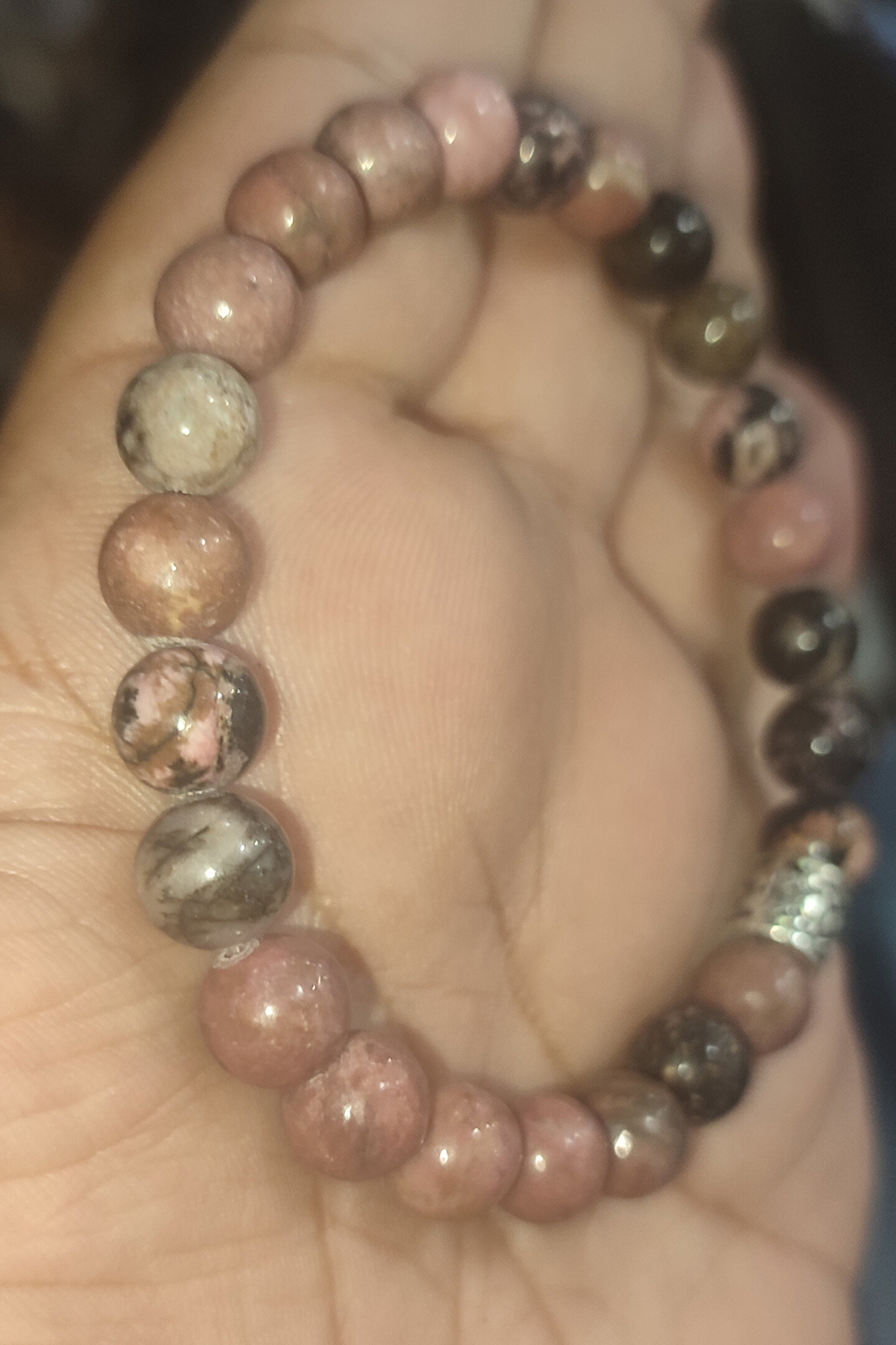 Doğal taşı sevenler için ideal bir aksesuar olan bu bileklik, şıklığınızı tamamlayacak zarif bir dokunuş sunar; Rodonit taşı, benzersiz renk tonları ve desenleriyle dikkat çeker; her kıyafetle uyum sağlayarak stilinizi öne çıkarır; 8 mm boyutundaki bu bileklik, hem günlük kullanım hem de özel günler için mükemmel bir seçenektir; Doğal taş materyali sayesinde her bileklik benzersizdir ve her biri farklı bir hikaye anlatır;