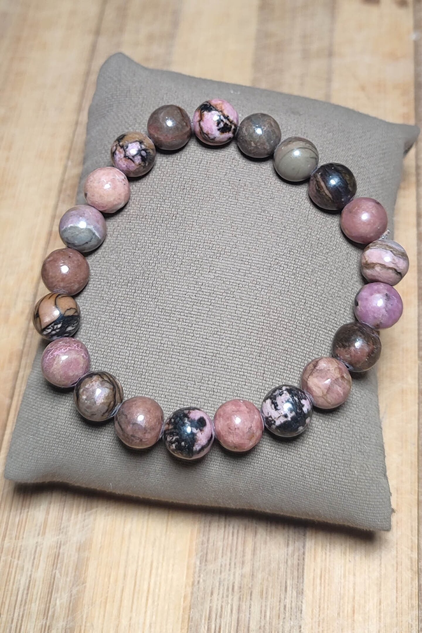 - Doğal taşı sevenler için ideal bir aksesuar olan bu bileklik, şıklığınızı tamamlayacak zarif bir dokunuş sunar; - Rodonite taşı, benzersiz renk tonları ve desenleriyle dikkat çeker; her kıyafetle uyum sağlayarak stilinizi öne çıkarır; - 8 mm kalınlığındaki bileklik, hem rahat bir kullanım sunar hem de bileğinizin doğal hatlarını nazikçe sarar; - Doğal taş materyali sayesinde her bileklik benzersizdir; her biri farklı bir renk ve desen sergiler, böylece kişisel tarzınıza özgünlük katar;