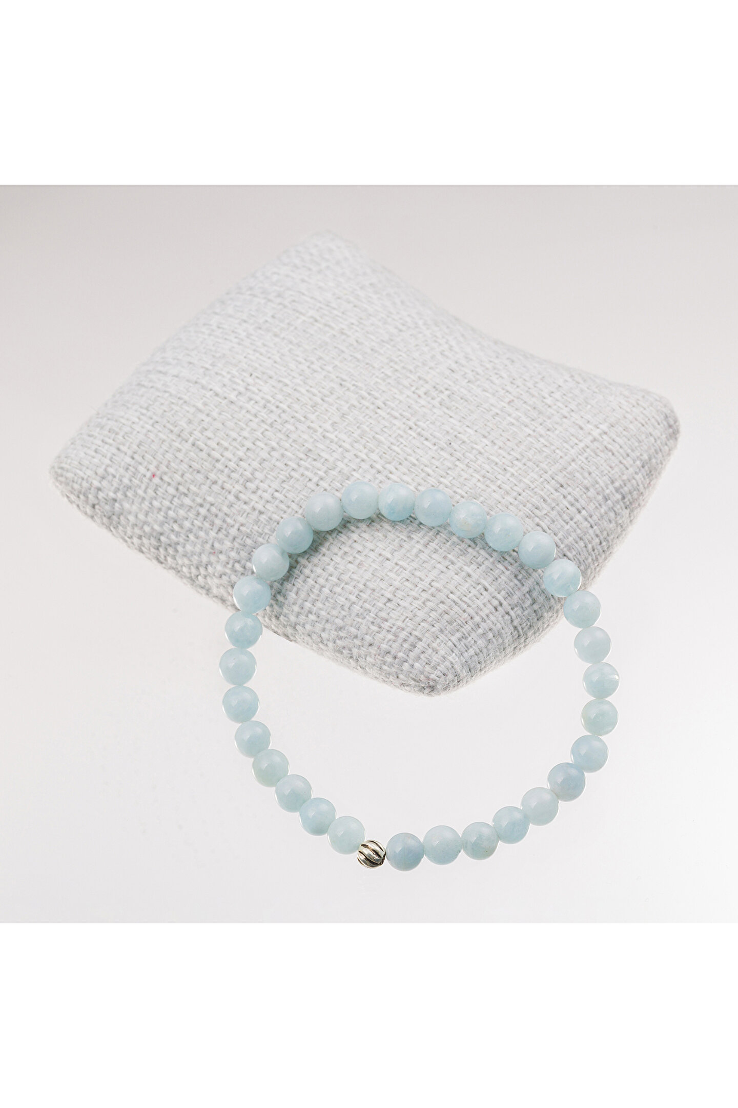 Doğal akuamarin taşı, gümüş bileklikte zarif bir şekilde kullanılarak, hem şıklığı hem de doğallığı bir arada sunar; Gümüş materyali sayesinde, bilekliğin parlaklığını ve dayanıklılığını artırırken, cildinizle uyumlu bir dokunuş sağlar; 6 mm boyutundaki akuamarin taşı, bileklikte rahat bir kullanım sunarken, zarif görünümüyle dikkat çeker; Akuamarin taşı, enerji verici ve sakinleştirici özellikleri ile bilinir; bu da onu günlük kullanım için ideal bir aksesuar haline getirir;