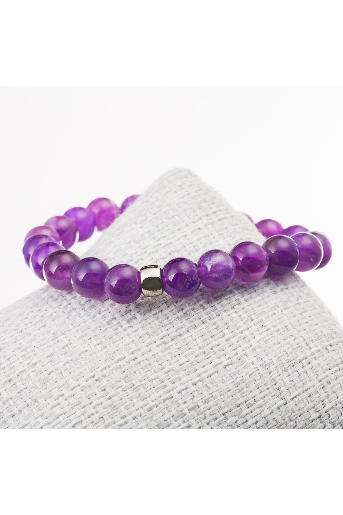 - Doğal Ametist taşı kullanılarak üretilmiş, şıklığı ve zarafeti bir arada sunan bileklik; - 8 mm boyutundaki bu bileklik, günlük kullanım için idealdir ve her türlü kıyafetle uyum sağlar; - Ametist taşı, sakinleştirici etkisiyle bilinir ve enerjiyi dengelemeye yardımcı olur; - Doğal taş materyali sayesinde her bileklik benzersizdir ve doğanın güzelliklerini bileğinizde taşımanızı sağlar;
