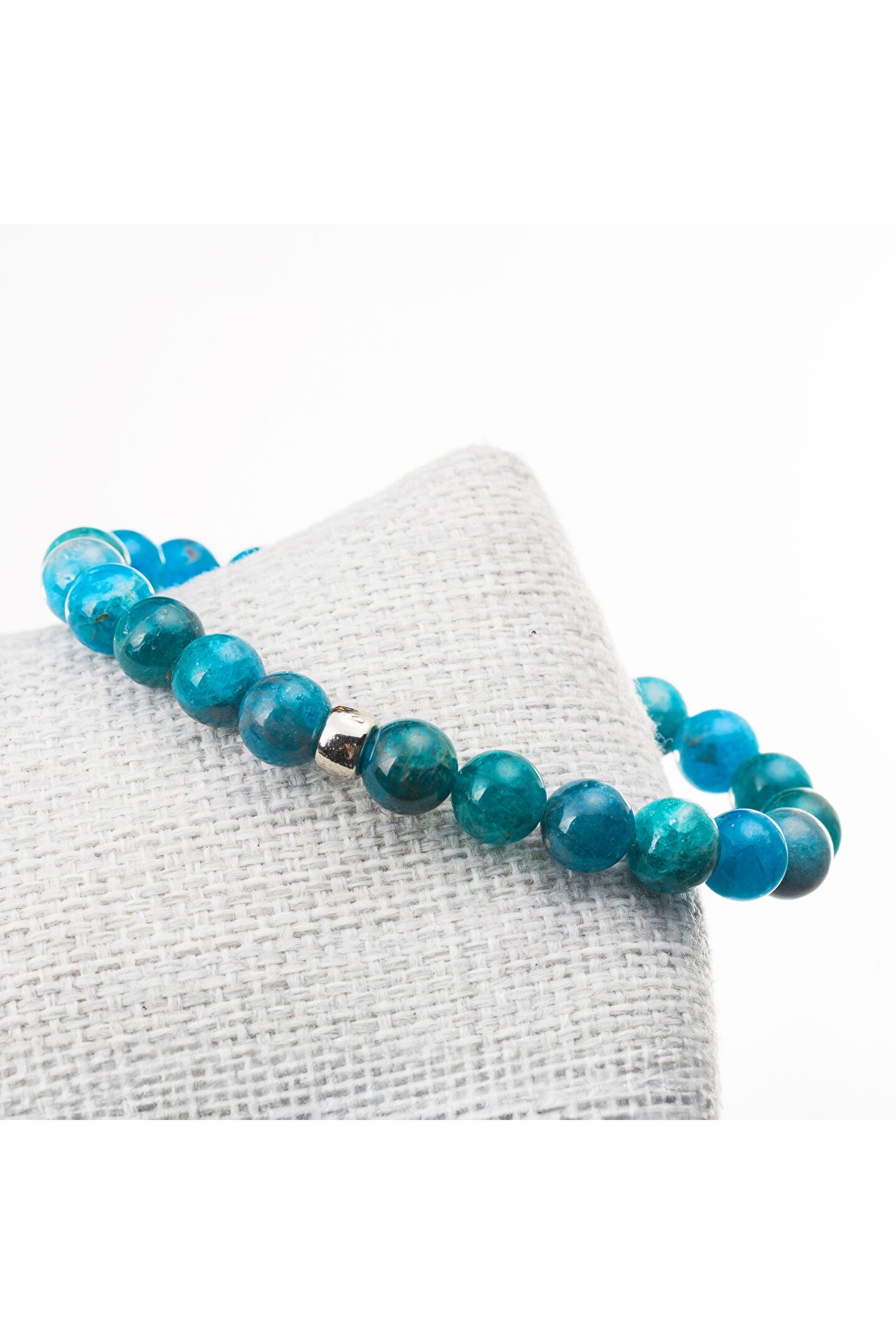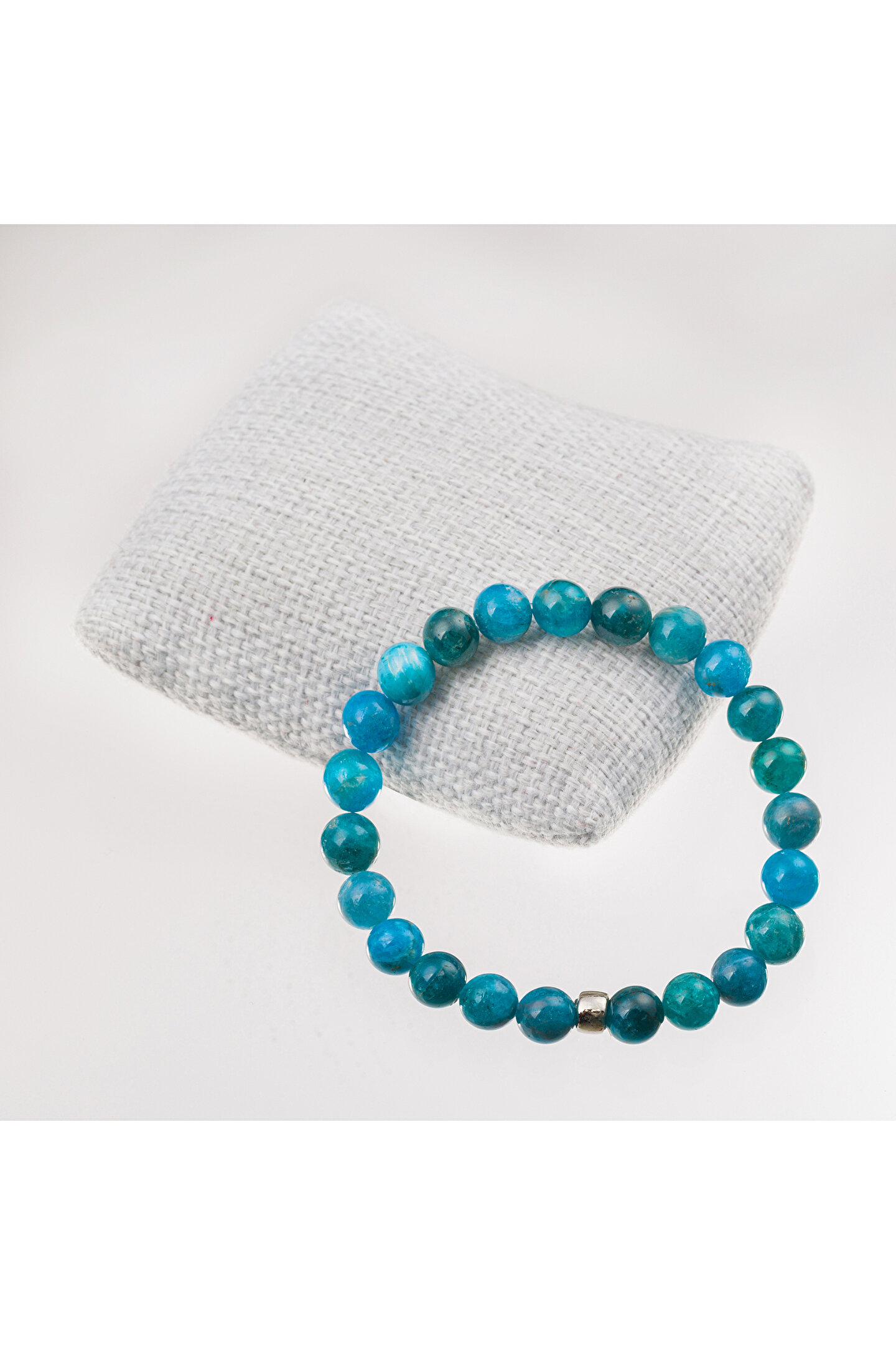 Doğal Apatit taşı kullanılarak üretilmiş, şıklığı ve zarafeti bir arada sunan bileklik; 8 mm boyutundaki bu bileklik, günlük kullanım için idealdir ve her türlü kıyafetle uyum sağlar; Doğal taş materyali sayesinde her bileklik benzersizdir ve doğanın güzelliklerini bileğinizde taşımanızı sağlar; Apatit taşı, enerji veren ve pozitif titreşimler yayan bir mineraldir; bu sayede hem estetik hem de ruhsal faydalar sunar;