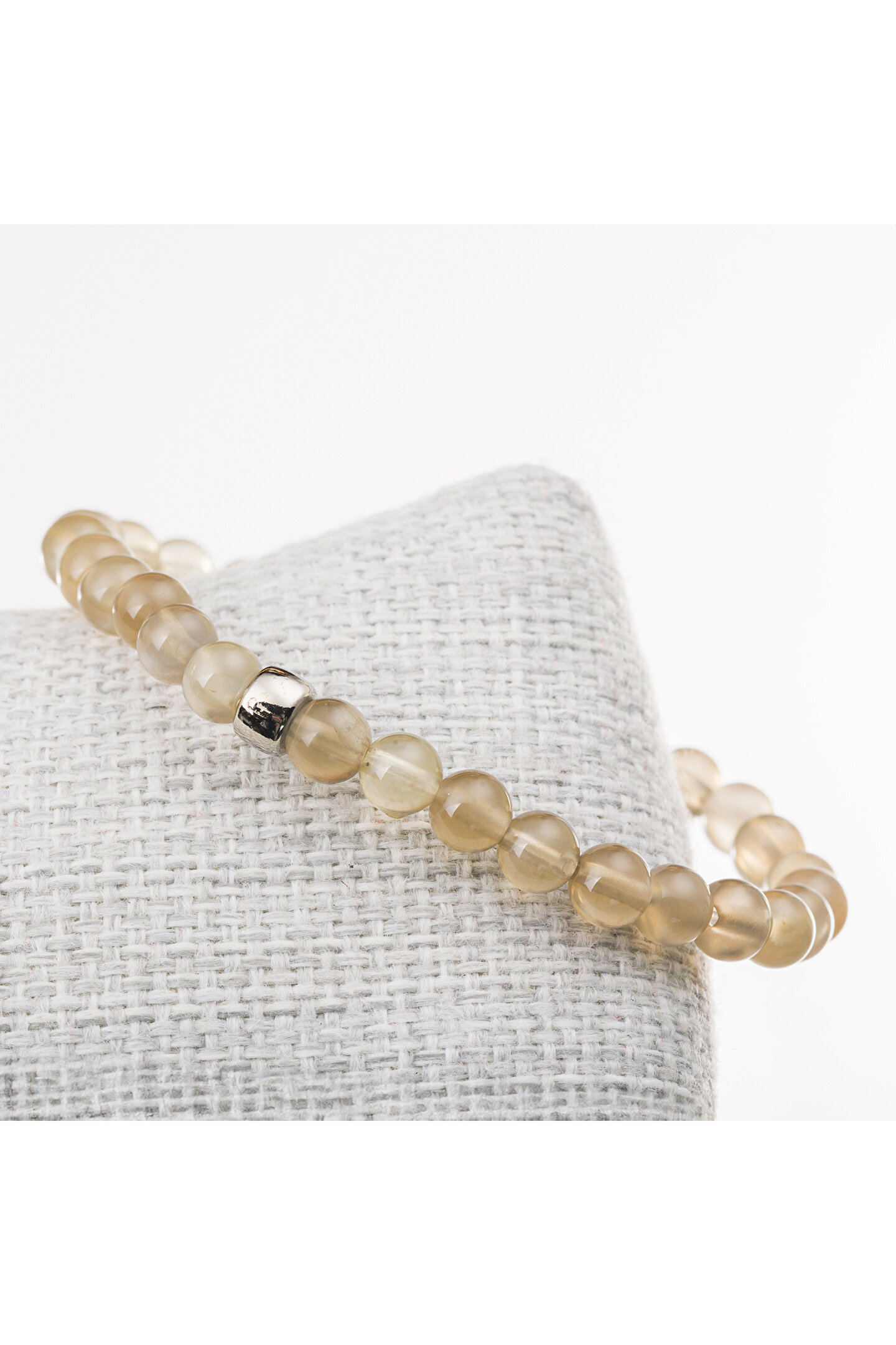 Doğal taş kullanımı sayesinde her bileklik benzersiz ve otantik bir görünüm sunar; Ay taşı bileklik, zarif tasarımıyla dikkat çeker ve şıklığınızı tamamlar; 6mm boyutundaki taşlar, bileklikte rahat bir kullanım sağlar ve gün boyu konforlu bir deneyim sunar; Doğal taş materyali ile hem estetik hem de doğallığı bir arada yaşatır;