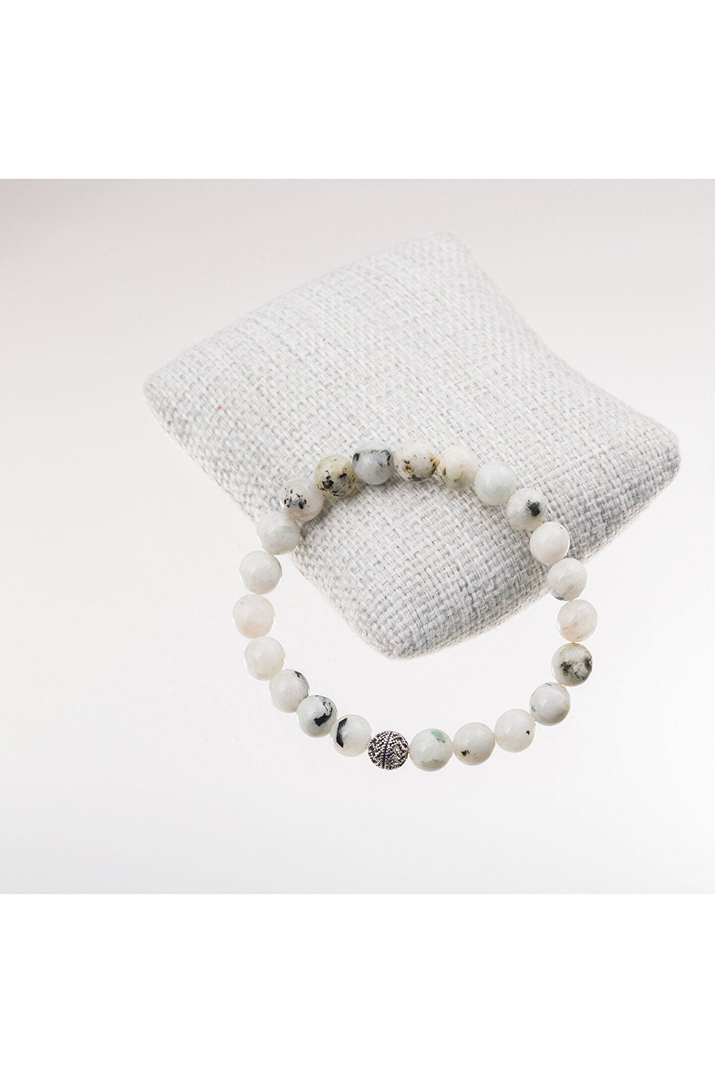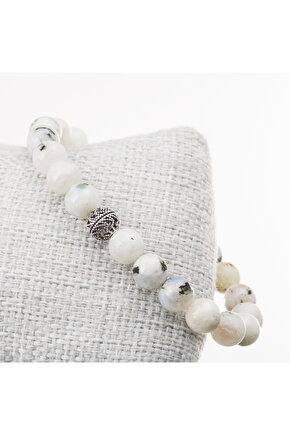 Ay taşı, gümüş bileklik ile zarif bir kombinasyon sunar ve her türlü kıyafetle uyum sağlar; Gümüş materyali sayesinde hem şıklığı hem de dayanıklılığı bir arada sunar, uzun süreli kullanım için idealdir; 8 mm boyutundaki ay taşı, bileklik üzerinde dikkat çekici bir detay olarak öne çıkar ve göz alıcı bir görünüm sağlar;