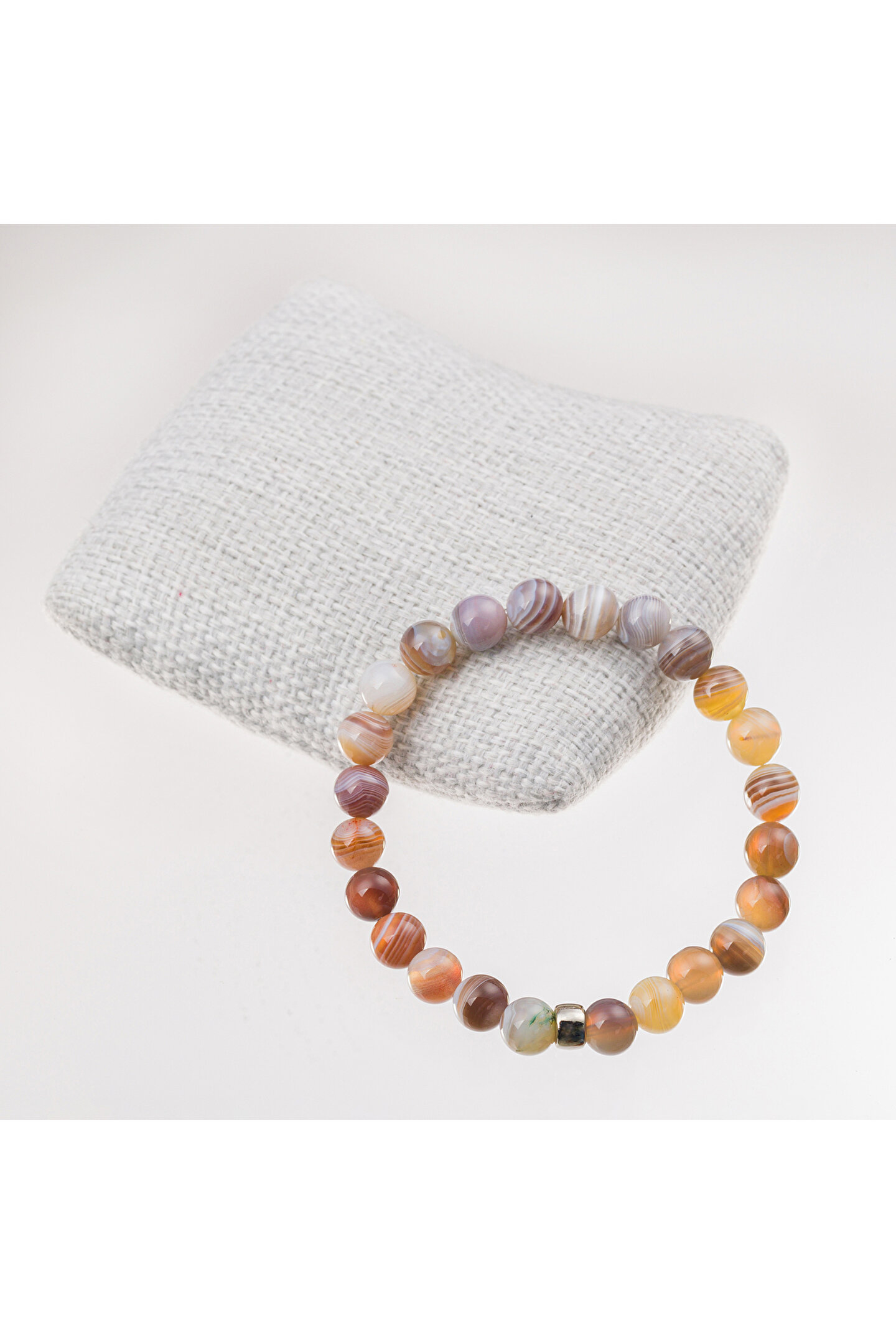 Doğal taş kullanımı sayesinde her bileklik benzersiz ve otantik bir görünüm sunar; Botswana akik taşı, bilekliğe zarif bir parlaklık ve estetik bir dokunuş katar; 8 mm boyutundaki bu bileklik, hem günlük kullanım hem de özel günler için idealdir; Doğal taş materyali ile hem şıklığı hem de doğallığı bir arada sunar;