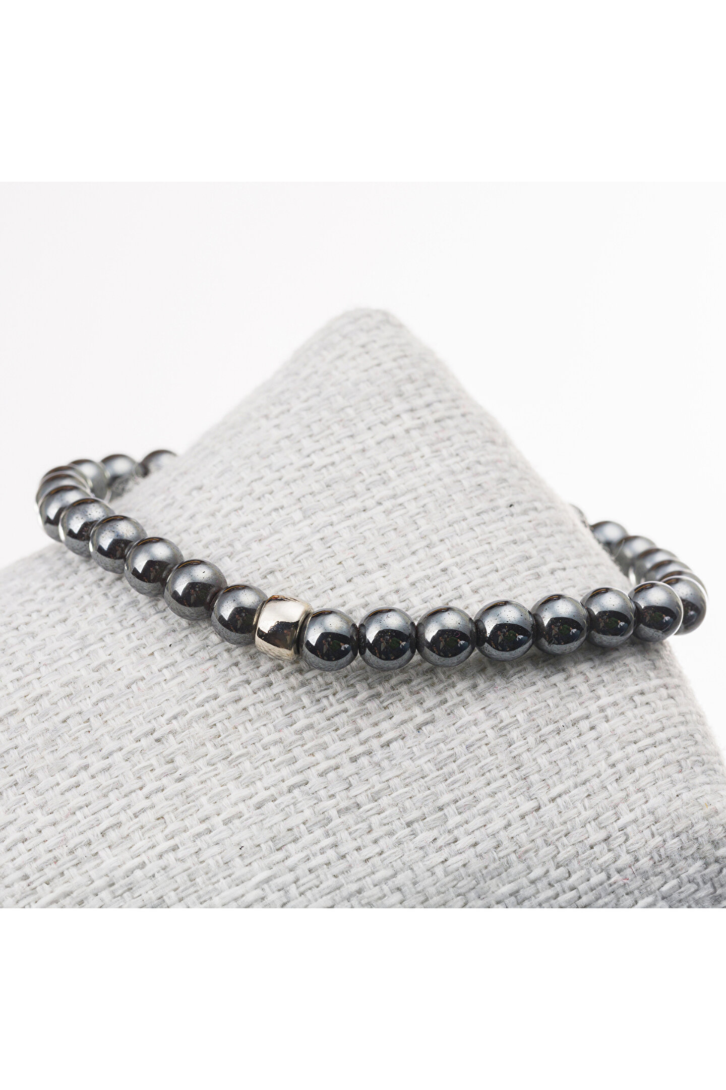 Doğal hematit taşı kullanılarak üretilmiş, şıklığı ve doğallığı bir arada sunan bileklik; 6 mm boyutundaki zarif tasarımıyla, her türlü kıyafetle kolayca uyum sağlar ve stilinizi tamamlar; Hematit taşı, benzersiz renk tonları ve desenleriyle dikkat çekerken, bileklikte kullanılan doğal materyal sayesinde her parça eşsizdir; Hematit taşı, enerji taşı olarak bilinir ve pozitif enerjiyi yansıtarak gün boyu kendinizi daha canlı hissetmenizi sağlar;
