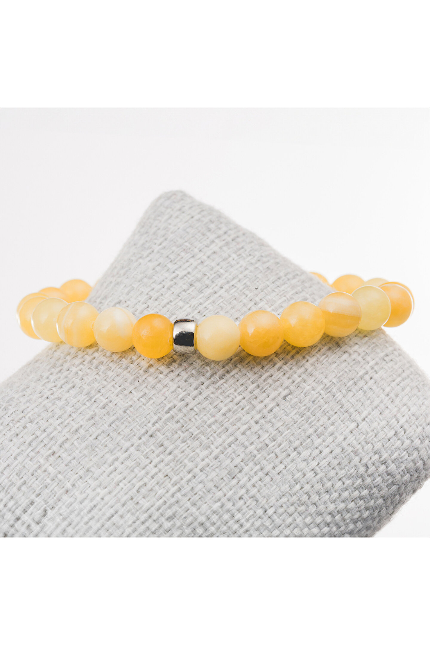 Doğal kalsit taşı kullanılarak üretilmiş, şıklığı ve zarafeti bir arada sunan bileklik; 8 mm boyutundaki bu bileklik, klasik ve modern tarzları harmanlayarak her türlü kıyafetle uyum sağlar; Doğal taş materyali sayesinde her bileklik benzersiz bir dokunuşla öne çıkar ve kişisel tarzınıza özgün bir hava katar; Doğal taş kullanımı, bilekliğin hem dayanıklı hem de estetik bir görünüm kazanmasını sağlar;