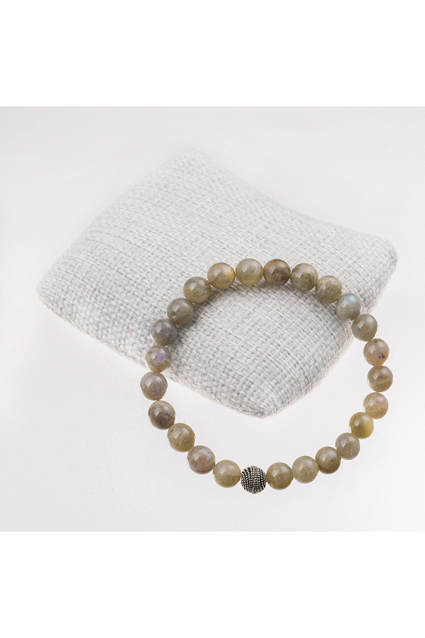 Doğal Labradorit taşı, bilekliğe zarif bir parlaklık ve şıklık katar; Gümüş materyal kullanımı, hem dayanıklılığı hem de estetik görünümü bir arada sunar; 8 mm boyutundaki tasarım, rahat bir kullanım sağlarken bileğinizin doğal hatlarını nazikçe sarar; Geleneksel ve modern tasarım anlayışını birleştiren bu bileklik, günlük kullanım için idealdir;