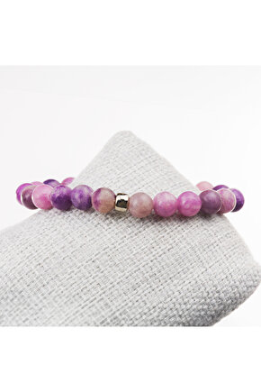 Doğal taş kullanımı sayesinde her bileklik benzersiz ve otantik bir görünüm sunar; Lepidolit taşı, enerjiyi dengelemeye yardımcı olan ve stresi azaltan özellikleriyle bilinir; 8 mm boyutundaki bu bileklik, zarif ve şık bir aksesuar olarak günlük kullanım için idealdir; Doğal taş materyali ile hem dayanıklılık hem de estetik bir dokunuş sağlar;