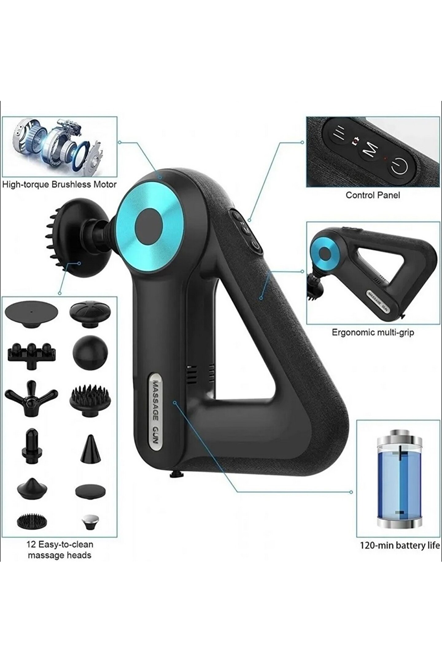 Tastech 12 Başlıklı Hız Ayarlı Masaj Tabancası Profesyonel Sporcu Kas Gevşetici Derin Doku Vücut Masaj Aleti
