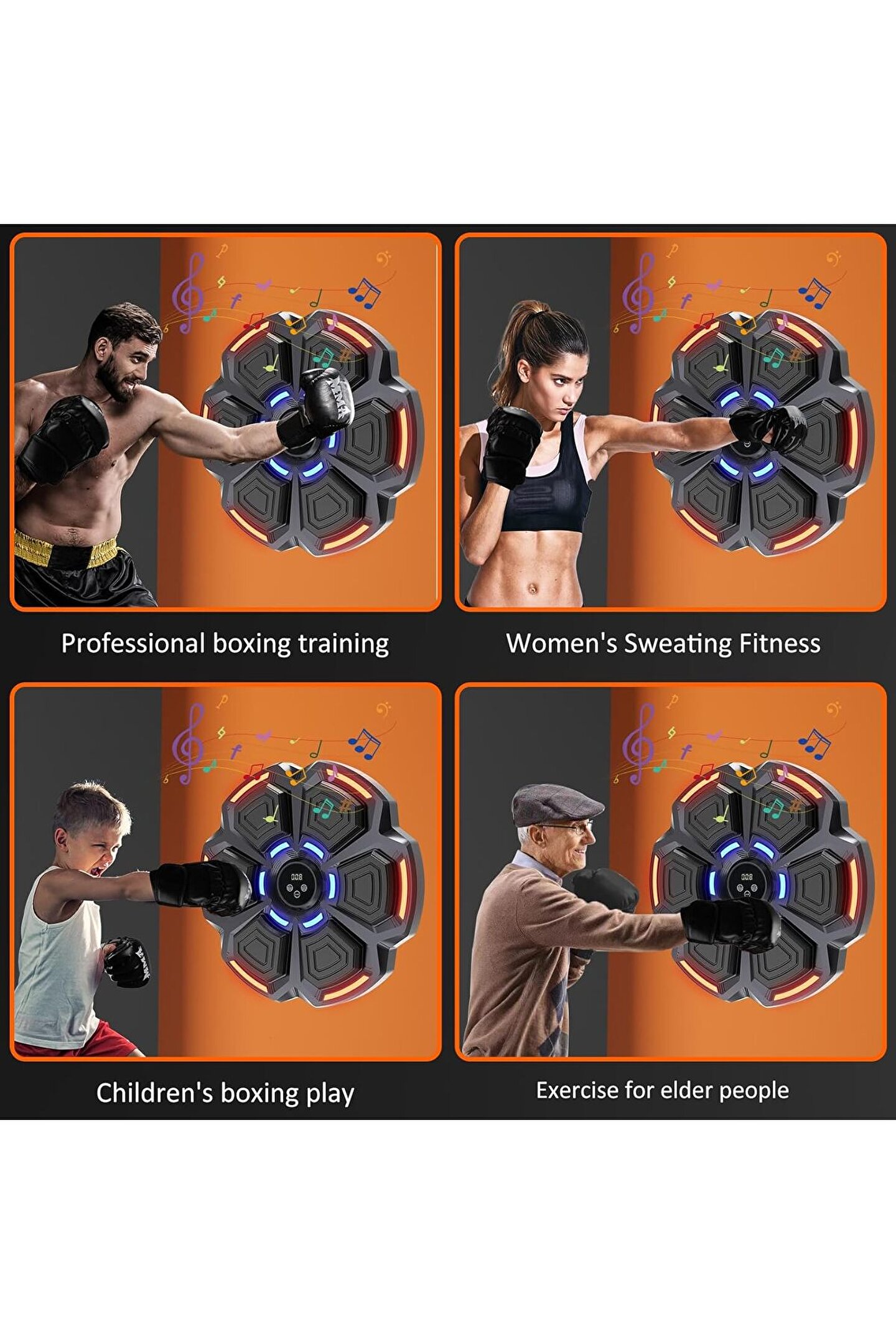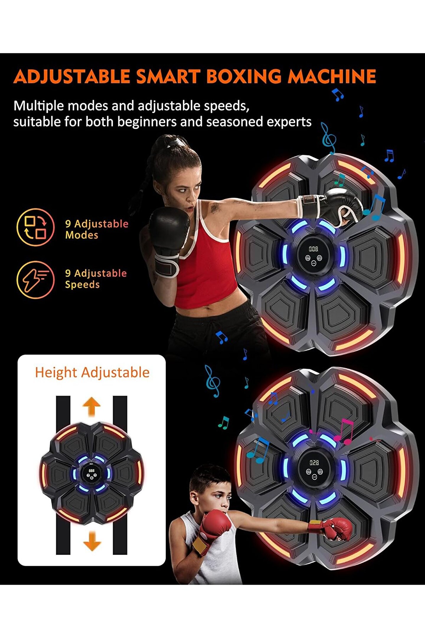 1. Müzik Motivasyonu: Akıllı Müzikli Boks Makinesi, müziğin gücünü boksun gücüyle kusursuz bir şekilde birleştirerek antrenmanları daha keyifli ve motive edici hale getiren devrim niteliğinde bir fitness cihazıdır.; 2. Akıllı Teknoloji: Bu boks makinesindeki boks hedefi, gelişmiş elektronik sensör teknolojisini kullanarak, reflekslerinizi ve vuruş doğruluğunuzu artırmaya yardımcı olarak egzersiz seanslarınızı daha etkili ve ilgi çekici hale getirir.; 3. Sağlıklı Egzersiz: Bu müzikle yumruk atan hedef, yalnızca fiziksel kondisyonu teşvik etmekle kalmaz, aynı zamanda aile bağları ve eğlence duygusunu da teşvik ederek çocuklara enerjileri için sağlıklı bir çıkış sağlar ve onları aktif bir yaşam tarzına teşvik eder.; 4. Birinci Sınıf Malzeme: Sağlam malzemelerden üretilen bu müzikli boks makinesi, yoğun egzersiz seansları sırasında güvenilir destek ve stabilite sunarak kullanım sırasında güvenliğinizi ve konforunuzu sağlar.; 5. Ayarlanabilir Yükseklik: Akıllı müzik boks makinesinin asılı yüksekliğini ayarlama esnekliği sayesinde her yaştan ve boydan birey, antrenman deneyimini özelleştirebilir ve optimum sonuçlarına ulaşabilir.; Bu uyarlanabilirlik, onu tüm ailenin kullanımına ve keyfini çıkarmasına uygun hale getirir.; Özellikler: Öğe Türü: Müzik Boks Makinesi Malzeme: PU, ABS Pil Türü: Lityum Pil Pilin Nominal Kapasitesi: 1200 mah (Dahili Pille Birlikte Gönderilir) Kullanım Şekli: Açtıktan sonra kullanın paket listesi: 1 x Akıllı Müzik Delme Hedefi 2 x Eldiven 1 x Kullanım Kılavuzu 1 x USB Kablosu 4 x Şeritler