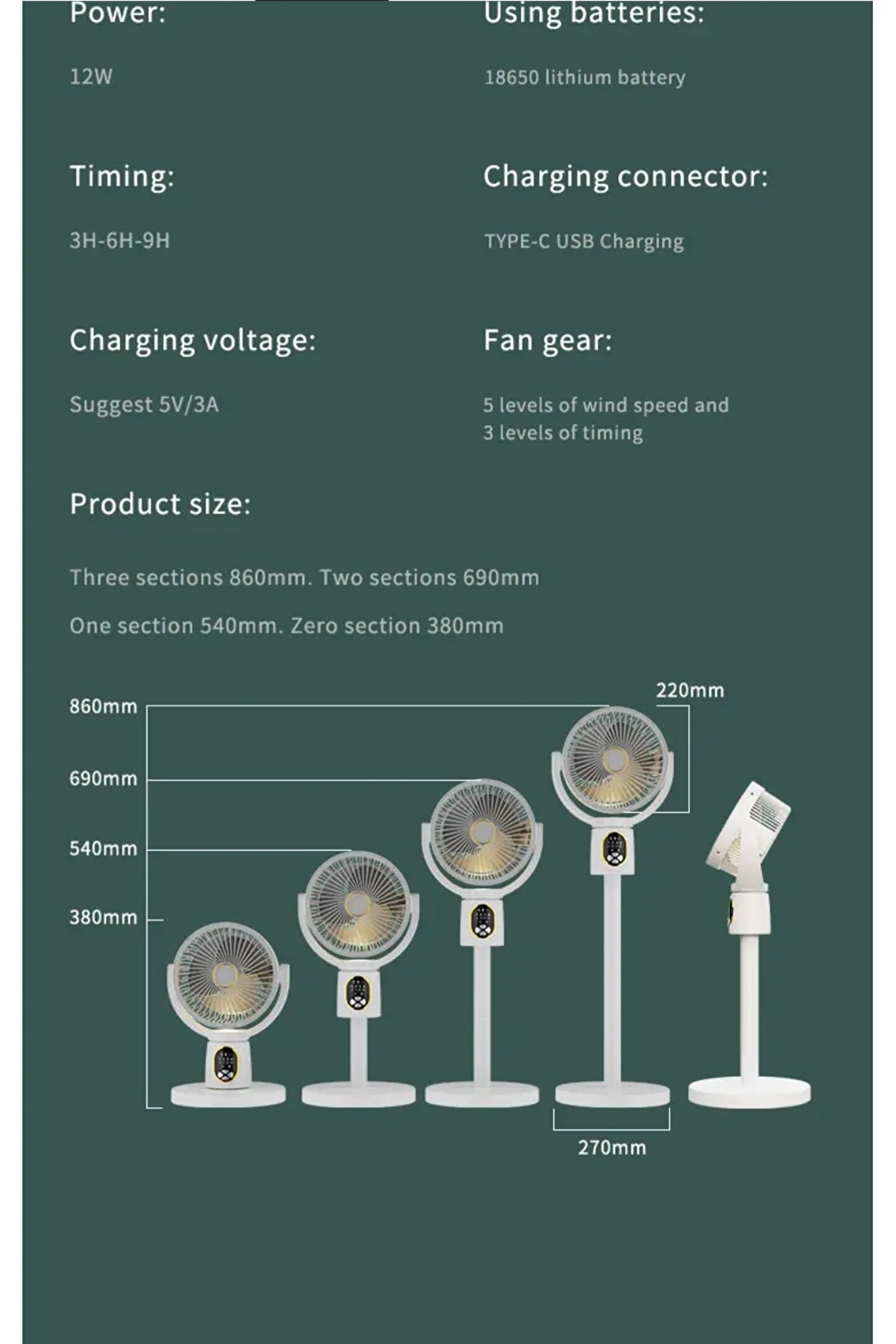 Bu boyunlu fan üç hızlı rüzgar hızına sahiptir. LED dijital ekran, gerçek zamanlı izleme, fonksiyon, dişli, güç. Yerleşik büyük kapasiteli bir batarya, düşük gürültü ve yazınıza serin bir his getiriyor.
