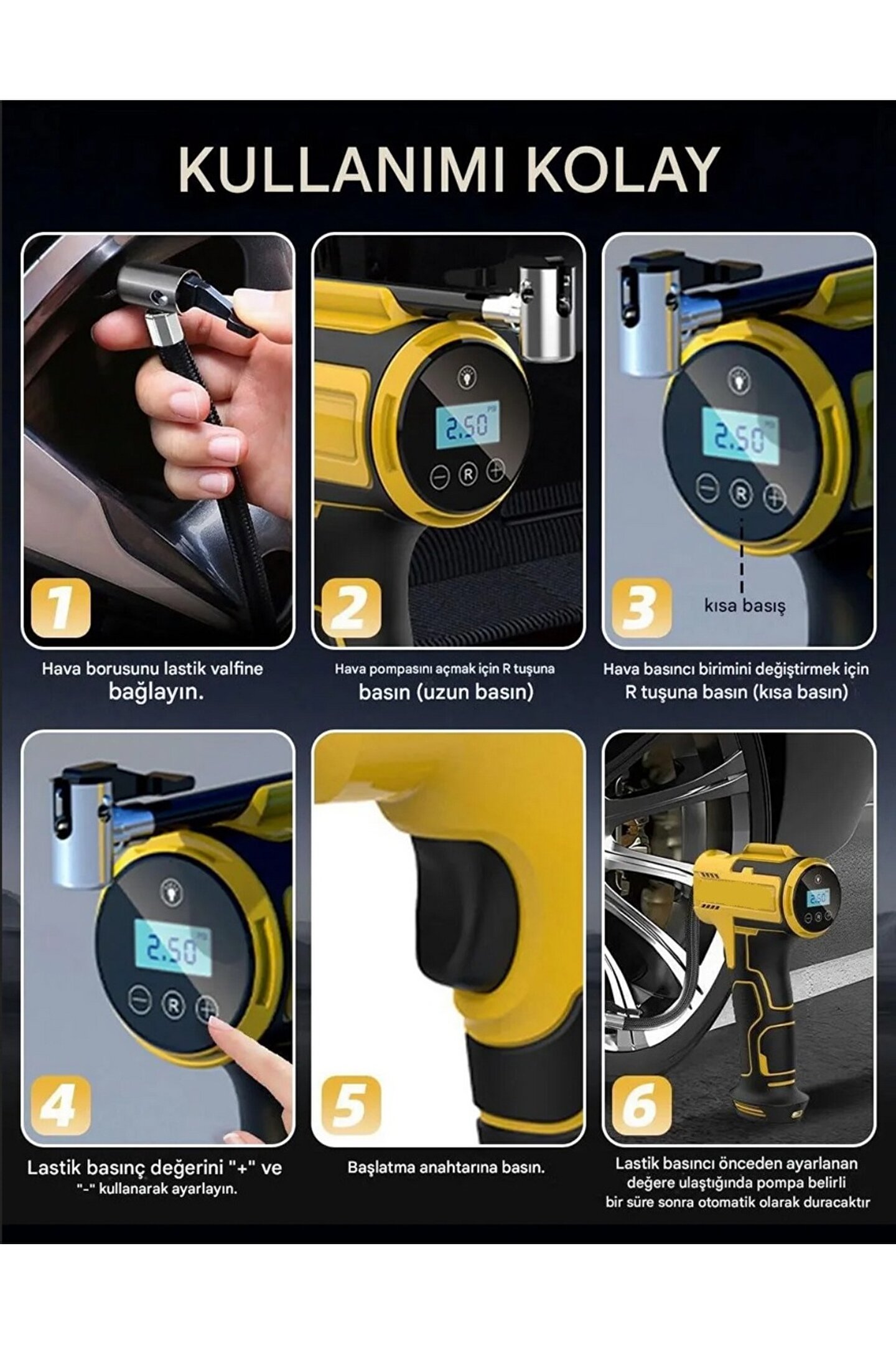 KULLANIMI KOLAY: Çeşitli şişirme ihtiyaçlarınıza göre 4+N akıllı modları (araba, motosiklet, bisiklet, top ve özel) seçebilirsiniz. Ayrıca ihtiyaca göre 4 basınç birimi (PSI, Bar, kPa, kg/cm²) arasından kolayca seçim yapabilirsiniz. Özel mod, şişirmek istediğiniz şişirilebilir malzemelere göre istenen basınç değerini (3-150PSI) serbestçe önceden ayarlamanıza olanak tanır.