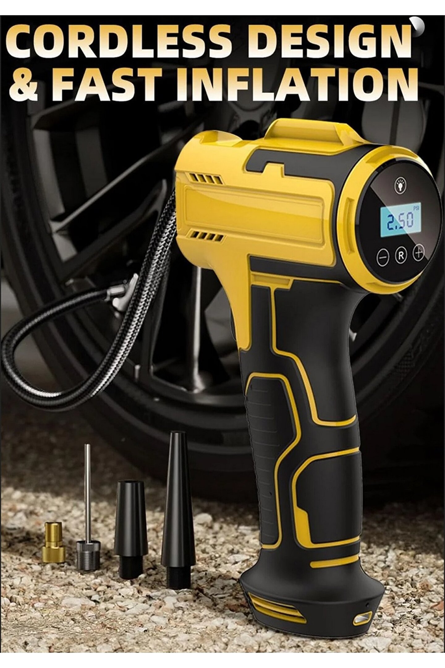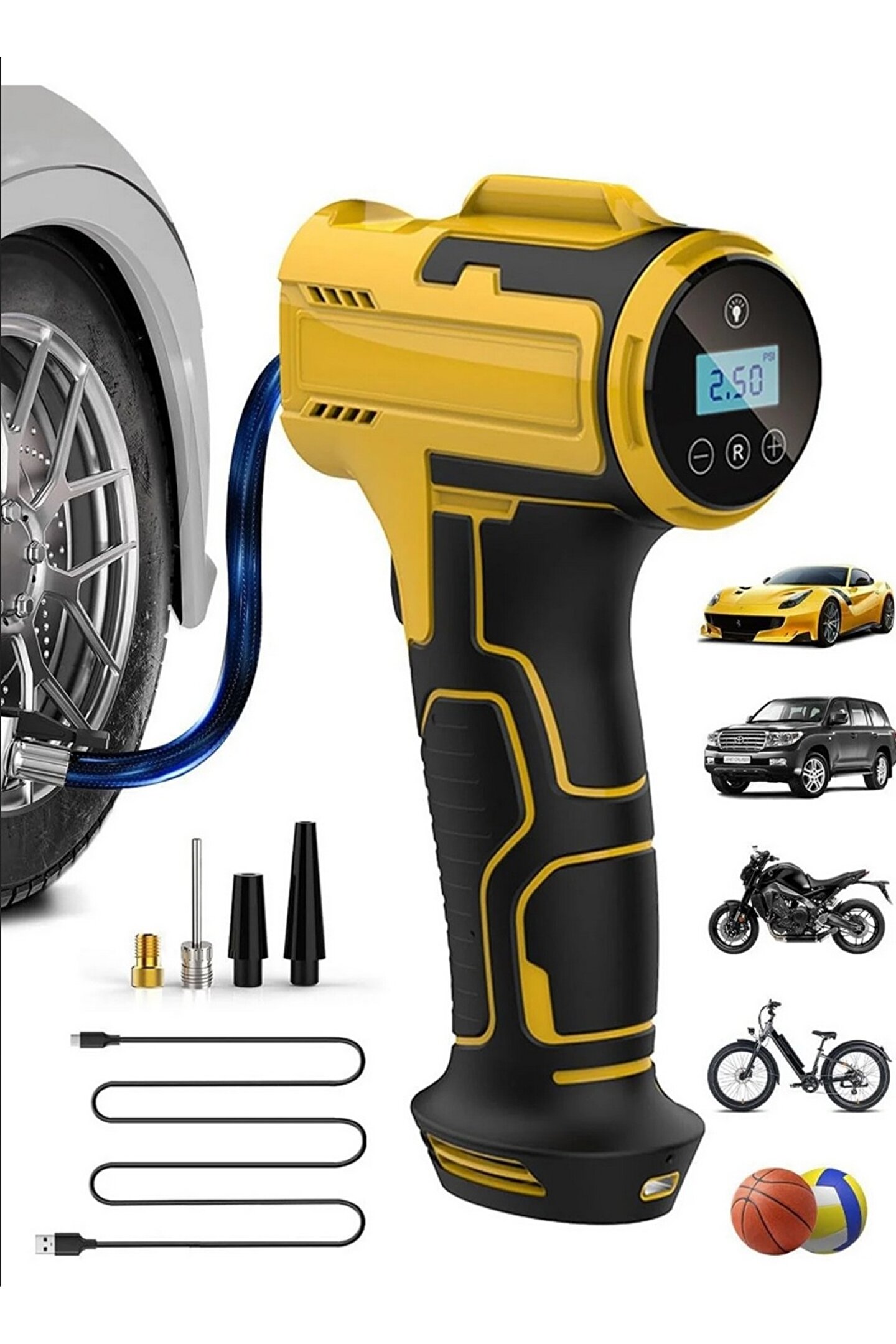 3600 mAh Şarjlı Tabanca Auhma Kompresör Araba Bisiklet Top Lastik Şişirme Pompası