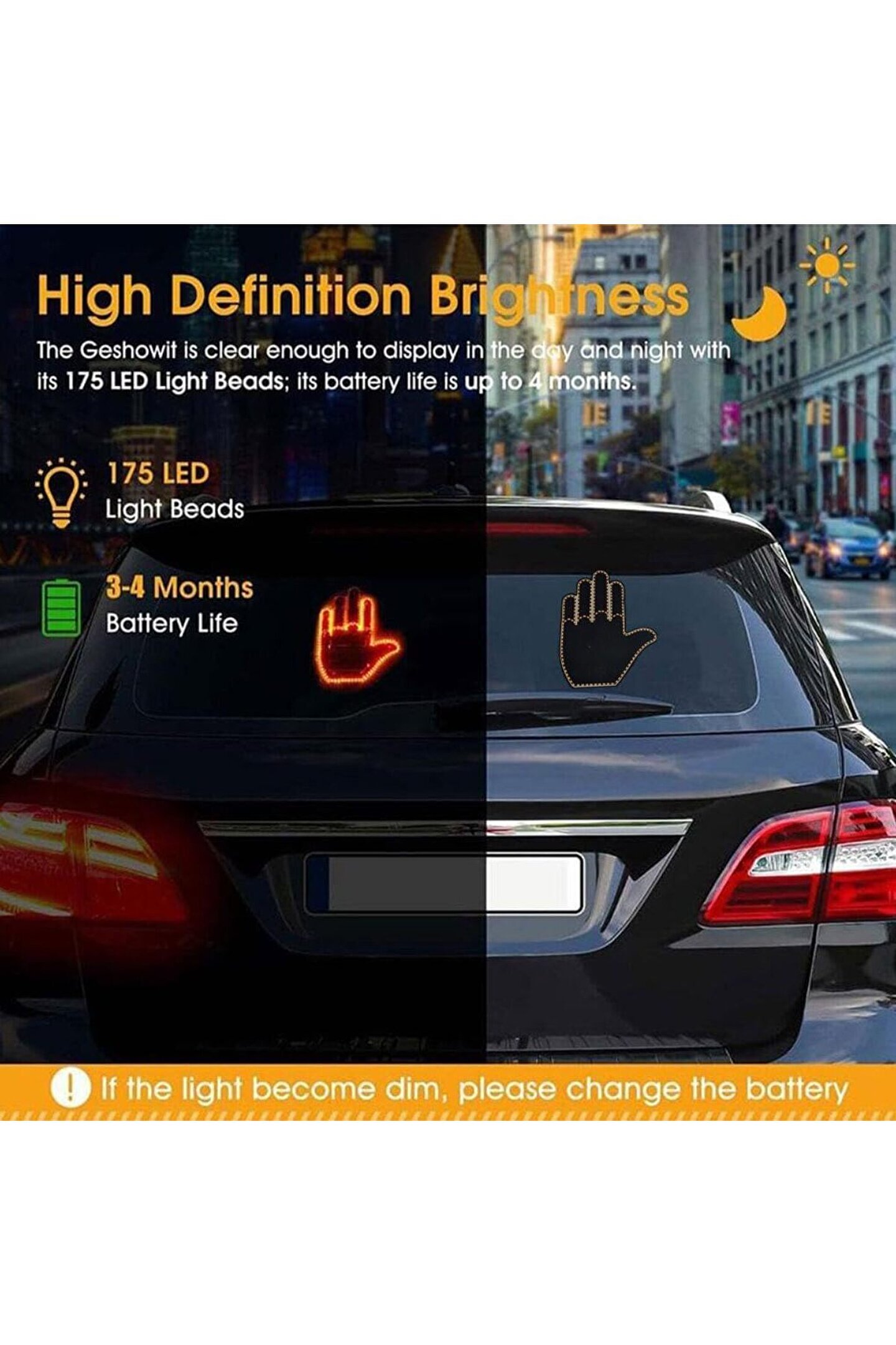 LED EL ARAÇ İÇİ UZAKTAN KUMANDALI 4 MODLU EL İŞARETİ IŞIKLI PARMAK