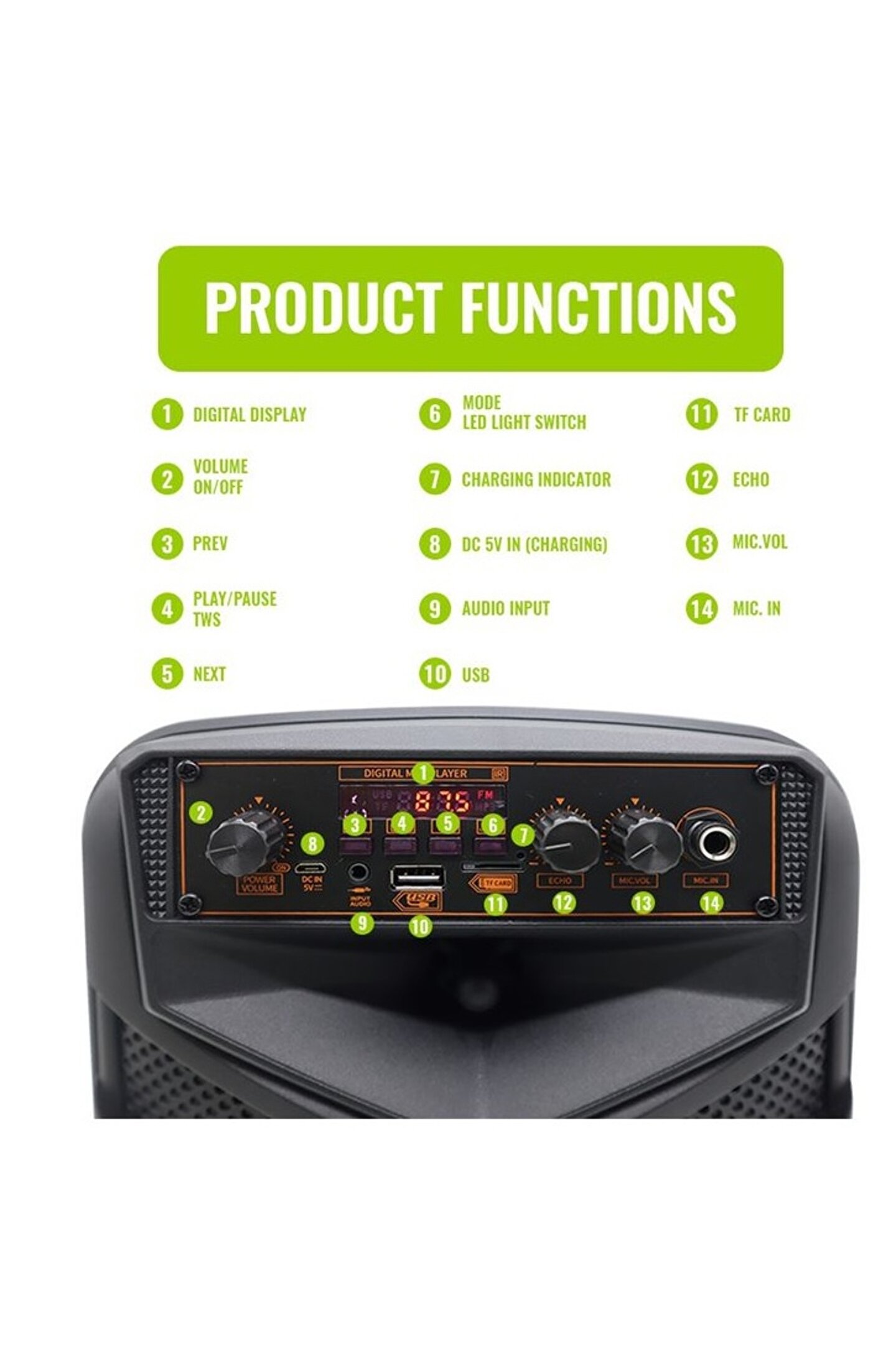 Ürün adı NDR P55 led açık parlantes led ekran woofer hoparlör ile 8 inç arabası parti taşınabilir bluetooth'lu hoparlör Malzeme ABS Bluetooth sürümü V5.0 Bluetooth iletim > 10m Fonksiyon Bluetooth ? FM ? TF ? USB ? TWS ? Karaoke mikrofon ? uzaktan kumanda Çıkış gücü 3 düğme ile 20W Voltaj DC 5V Pil 3.7V 1800 mAh Ürün boyutu 375*235*205mm Ağırlık 1.7 KG Paket Hoparlör x 1 adet, USB kablosu x 1 adet, uzaktan kumanda x 1 adet, mikrofon x 1 adet Özellikler 1. ; Yepyeni ve kaliteli. ; 2. ; 20W yüksek güç, LED RGB renkli ışıklar ile hoparlör, ışıklar müzik ile atlayacaktır. ; 3. ; Dahili stereo ve 360 ° stereo sağlanır. ; 4. ; Büyük kapasiteli pil 1800 mAh, uzun vadeli ve etkili dayanıklılık koruyabilirsiniz. ; 5. ; FM radyo serbestçe radyo dinlemenizi sağlar. ; 6. ; Support mp3, wma, WAV, FLAC, ape formatında müzik dosyaları. ; 7. ; Destek TF kartı veya 32g kadar misro SD kart, destek USB 2.0 disk. ; 8. ; Bir uzaktan kumanda ile donatılmış, doğrudan hoparlör çalıştırmak için uzaktan kumandayı kullanabilirsiniz, bir mikrofon ile donatılmış, her zaman ve her yerde karaoke modu açabilirsiniz. ; 9. ; TWS fonksiyonu, bir telefon ile senkronize etmek için iki hoparlör bağlayabilirsiniz. ; 10. ; Basit anahtar kontrolü, açmak/kapatmak için düğmeye basabilirsiniz, oynat/duraklat, anahtarı Mod, şarkıları atla, ses seviyesini ayarla, vb. ; 11. ; Bluetooth 5.0, tüm Bluetooth cihazları ile uyumludur.;