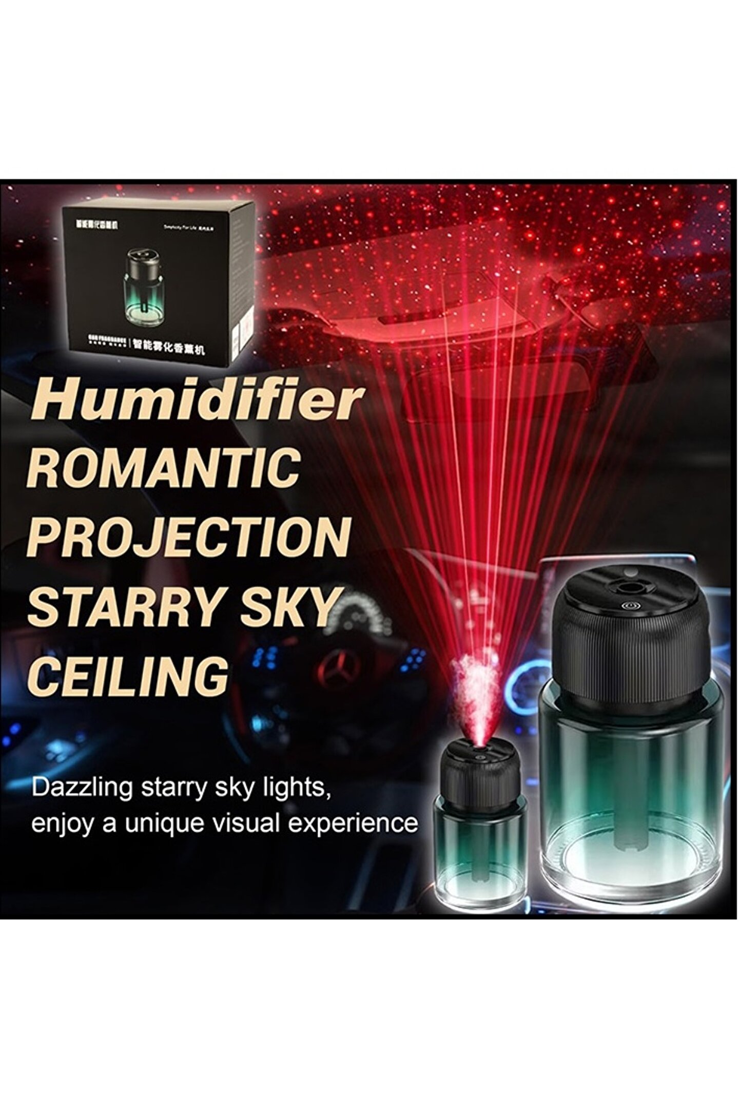 ŞARJLI ARAÇ İÇİ PARFÜM DİFÜZÖRÜ KOKULU HAVA NEMLENDİRİCİ HUMUDİFİER YILDIZ TAVAN LAZER