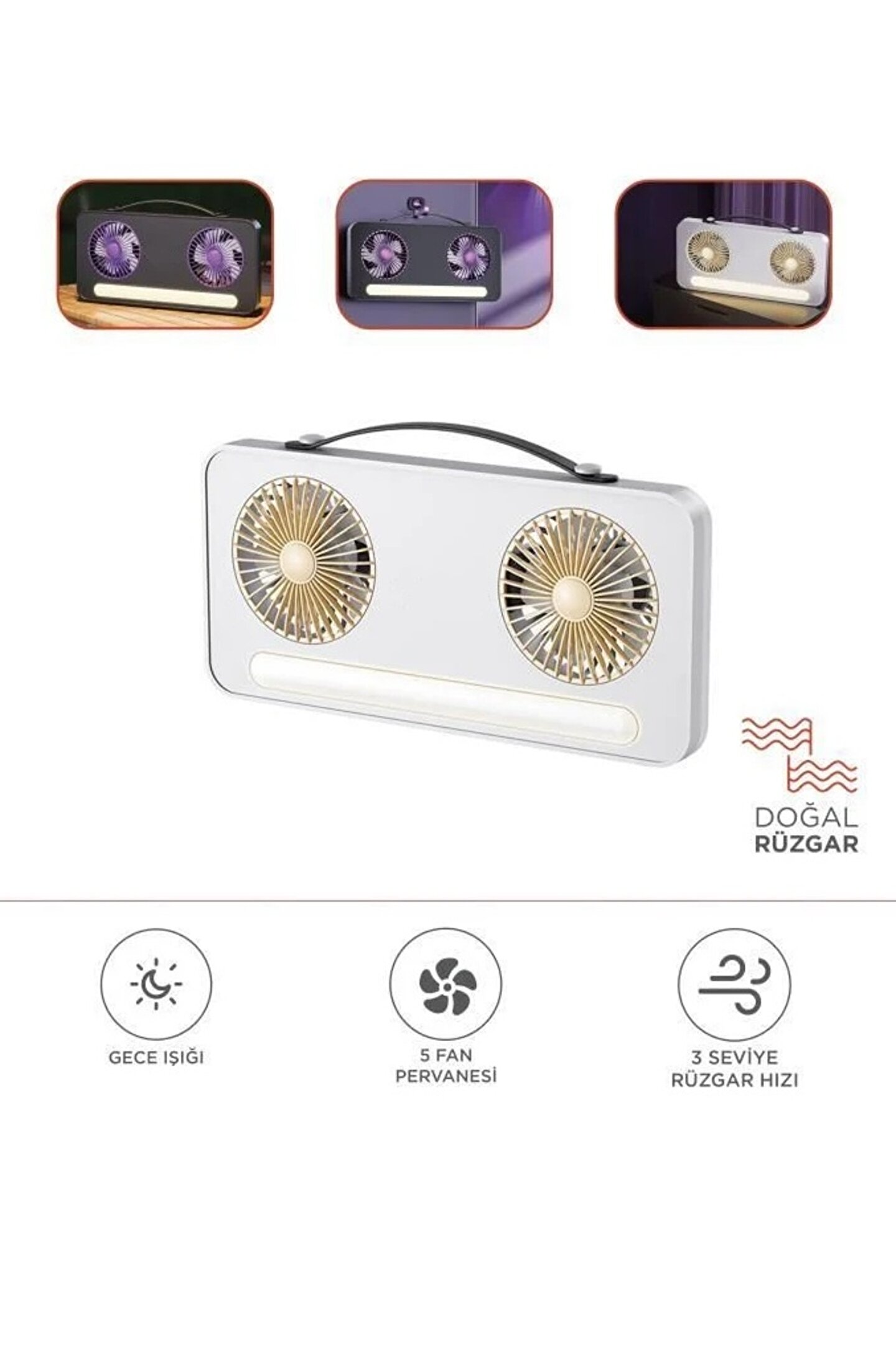 ŞARJLI VANTİLATÖR IŞIKLI MİNİ 2 Lİ FAN MASAÜSTÜ TAŞINABİLİR MİNİ HAVA SOĞUTUCU