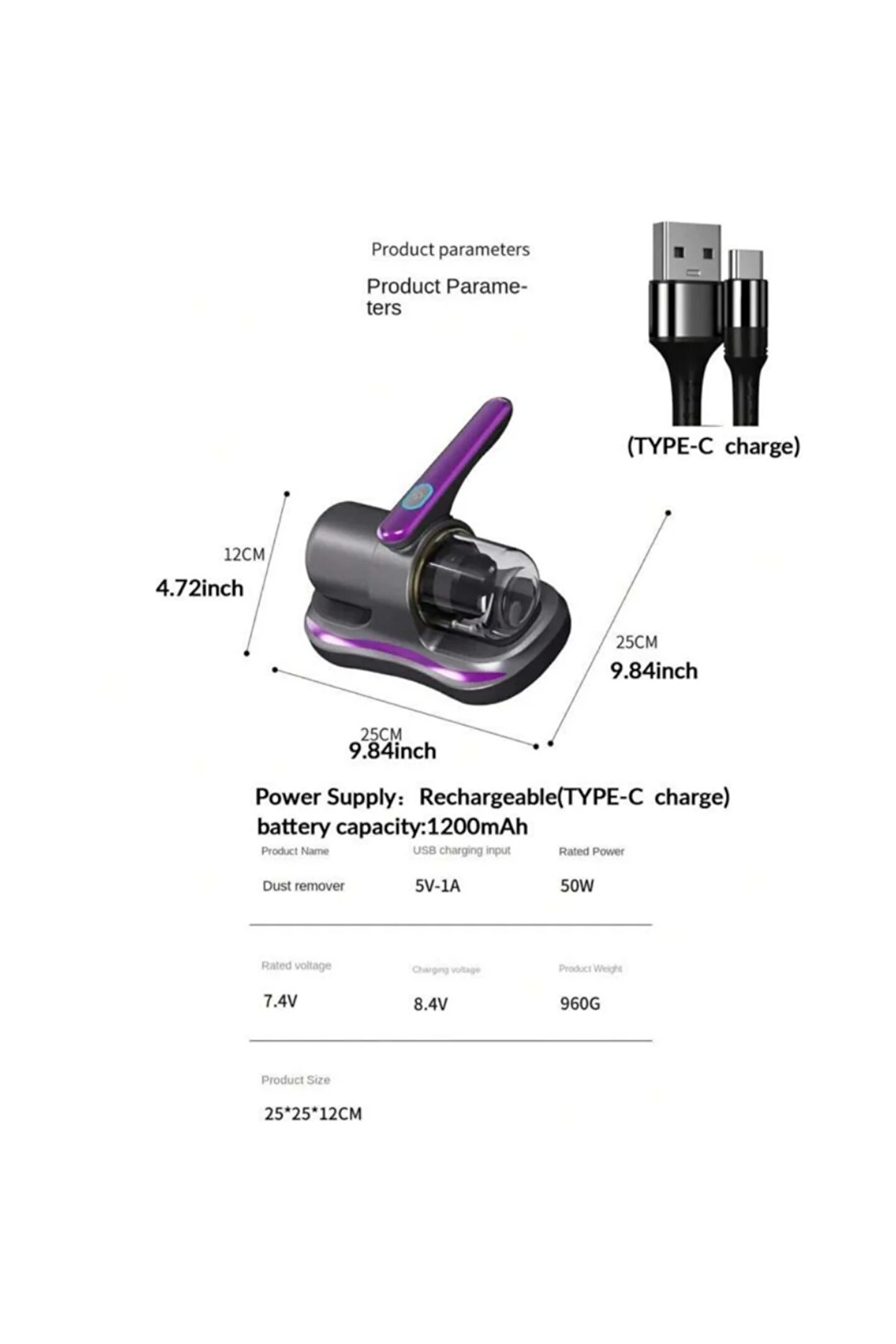 【Dahili 2000mAh Lityum Pil】Dahili 2000mAh şarj edilebilir lityum pil ile bu yatak elektrikli süpürgesi, kesintisiz temizlik için uzun süreli kullanım sunar. Dolaşan kablolarla vedalaşın ve kablosuz temizleme özgürlüğünün tadını çıkarın.