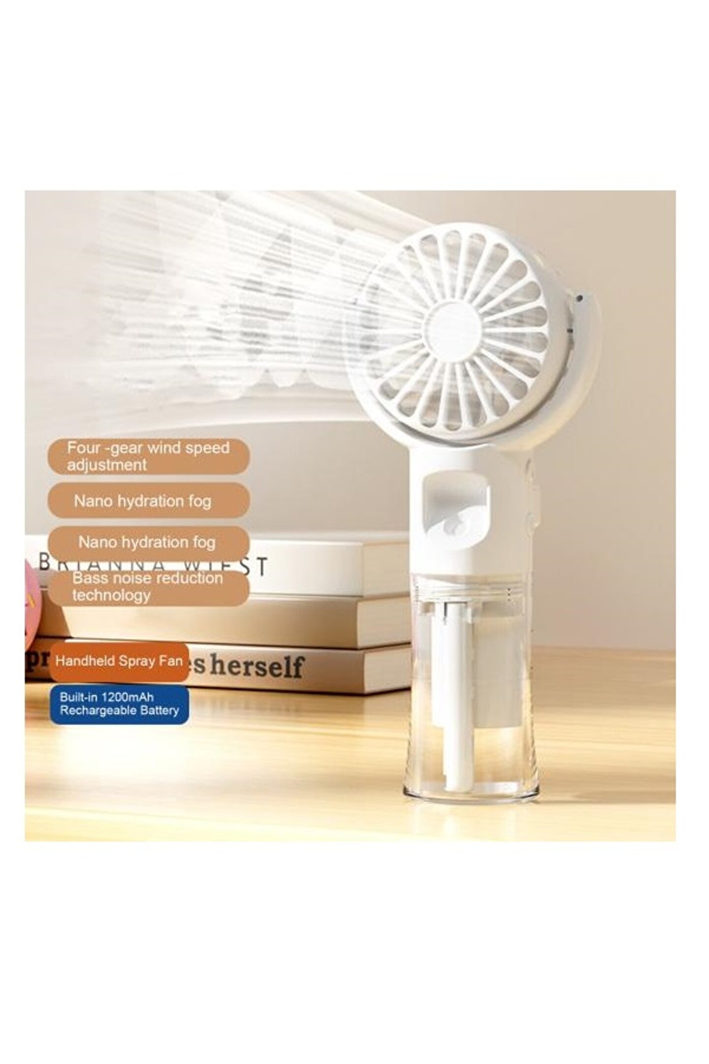 1. Hava ferahlatıcı: şeffaf 20ml su deposu kurulumu ve gelişmiş su molekülü atomizasyon teknolojisi ile donatılmış, bu taşınabilir % su buharlı vantilatör zahmetsizce havayı nemlendirir ve yeniler. Spreyi açmak ve soğutma yaz esintisinin tadını çıkarmak için düğmeye basın ve basılı tutun.