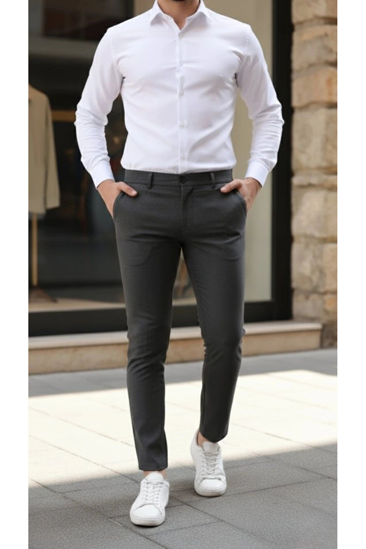 Erkek Slim Fit Likralı Gabardin Pantolon