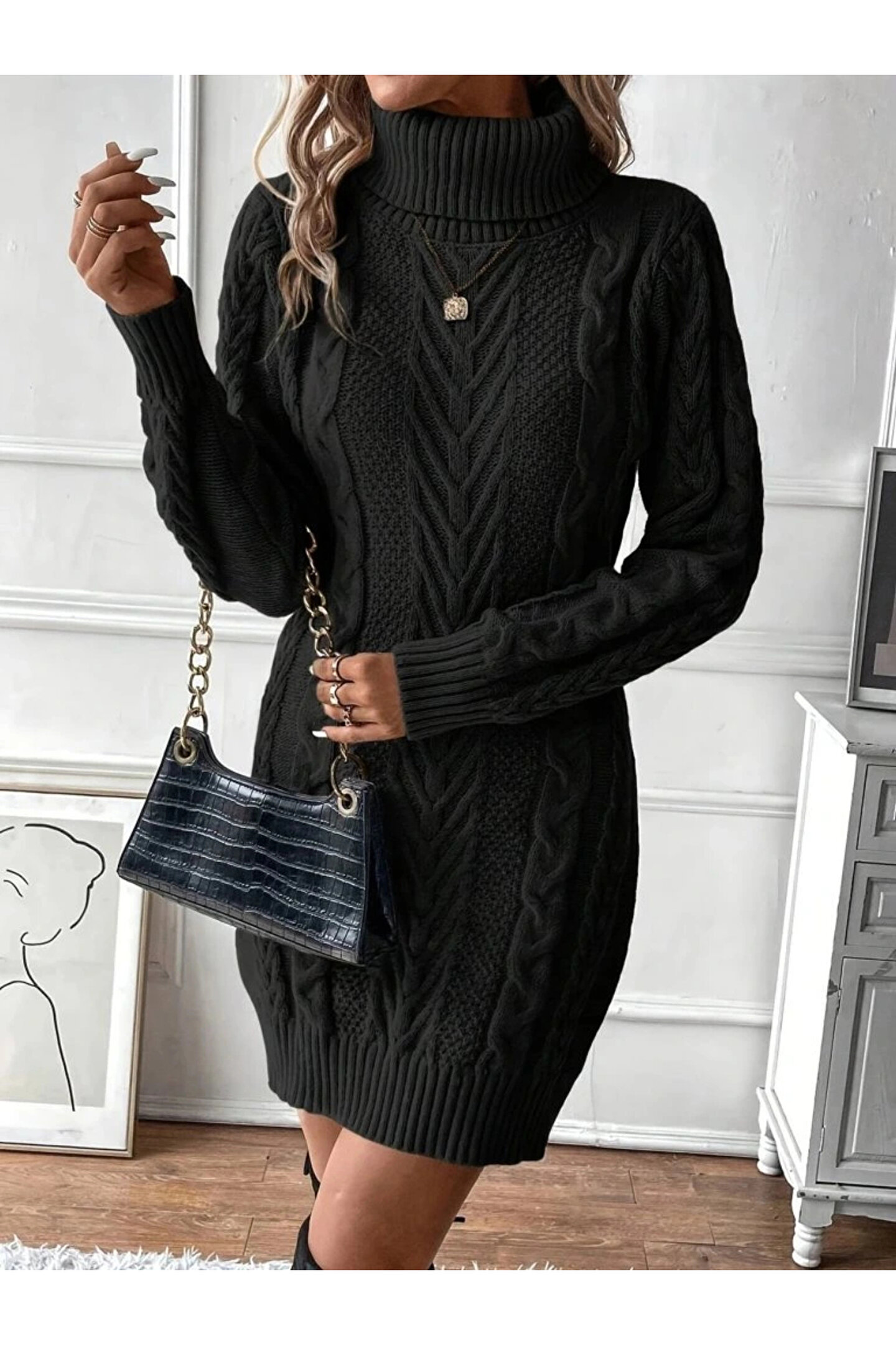Kadın Balıkçı Yaka Mini Triko Elbise