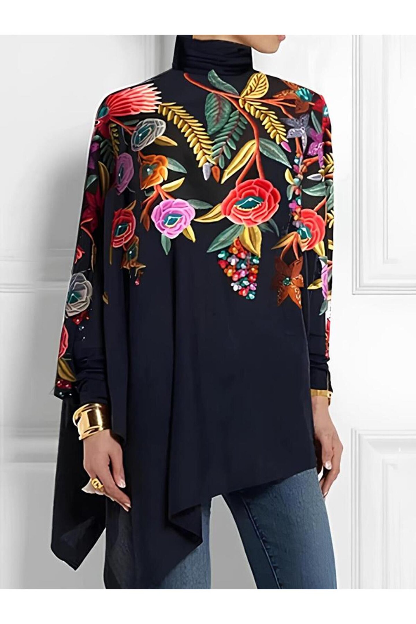 Kadın Uzun Kollu Balıkçı Yaka Asimetrik Kesim Mikro Bluz