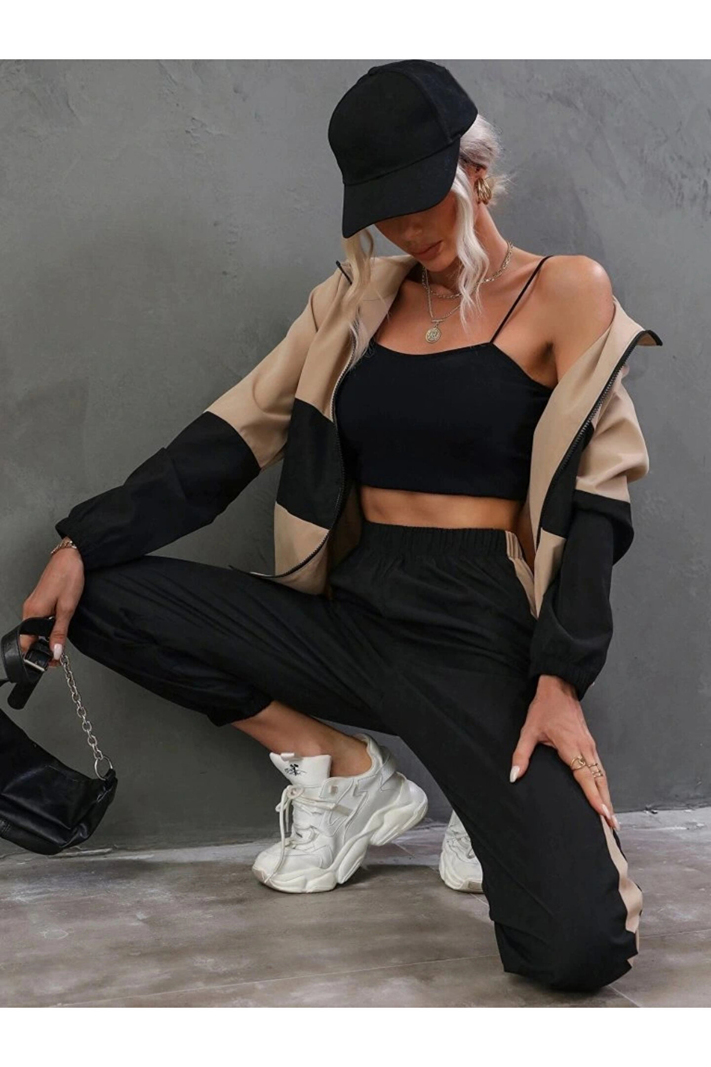 Kadın Uzun Kollu Kapşonlu önden Fermuarlı Viskon Iki Iplik Bluz Ve Pantolon Ikili Takım
