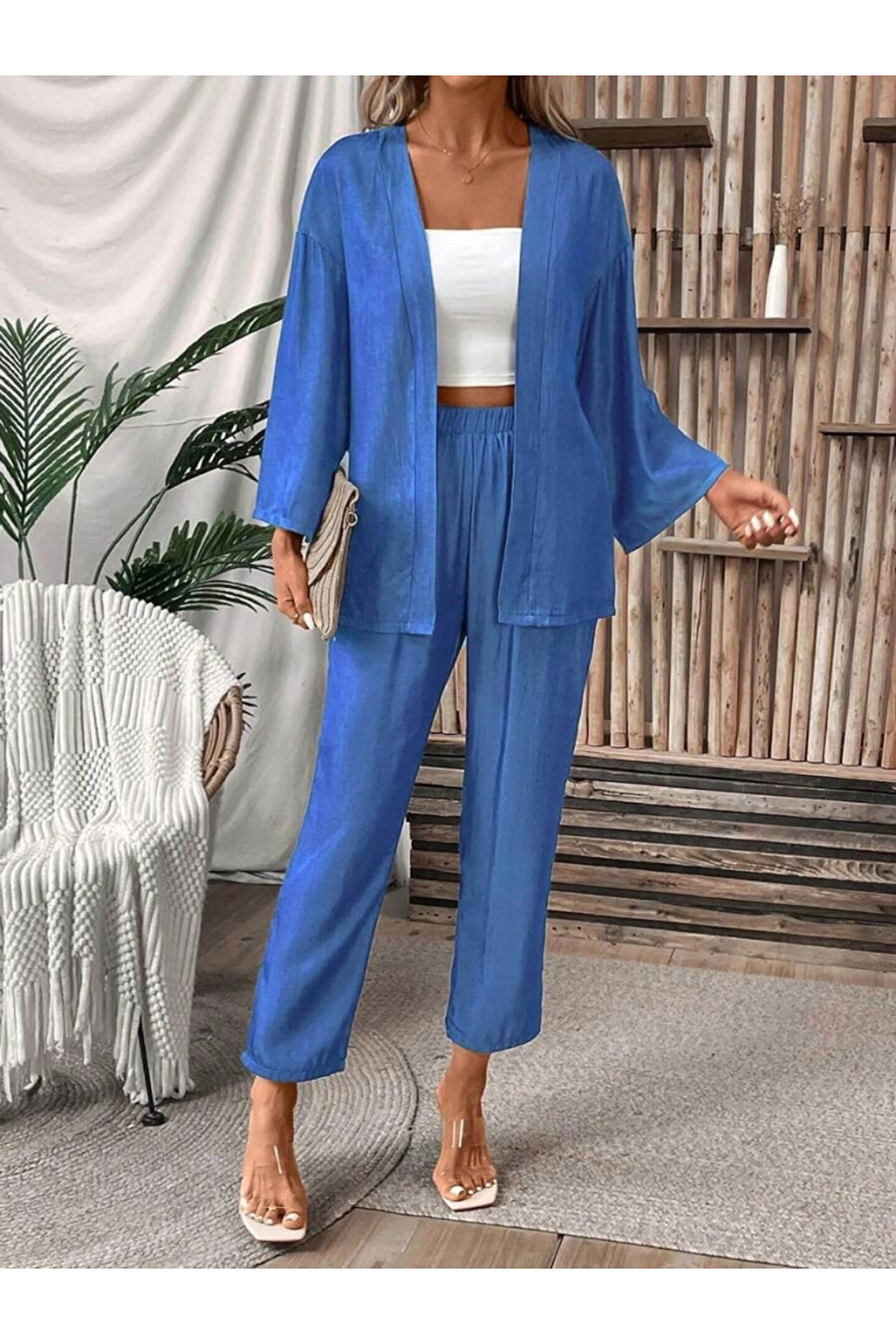 TBL DEKOR Kadın Uzun Kollu önü Açık Dokuma Ceket Ve Pantolon Ikili Takım