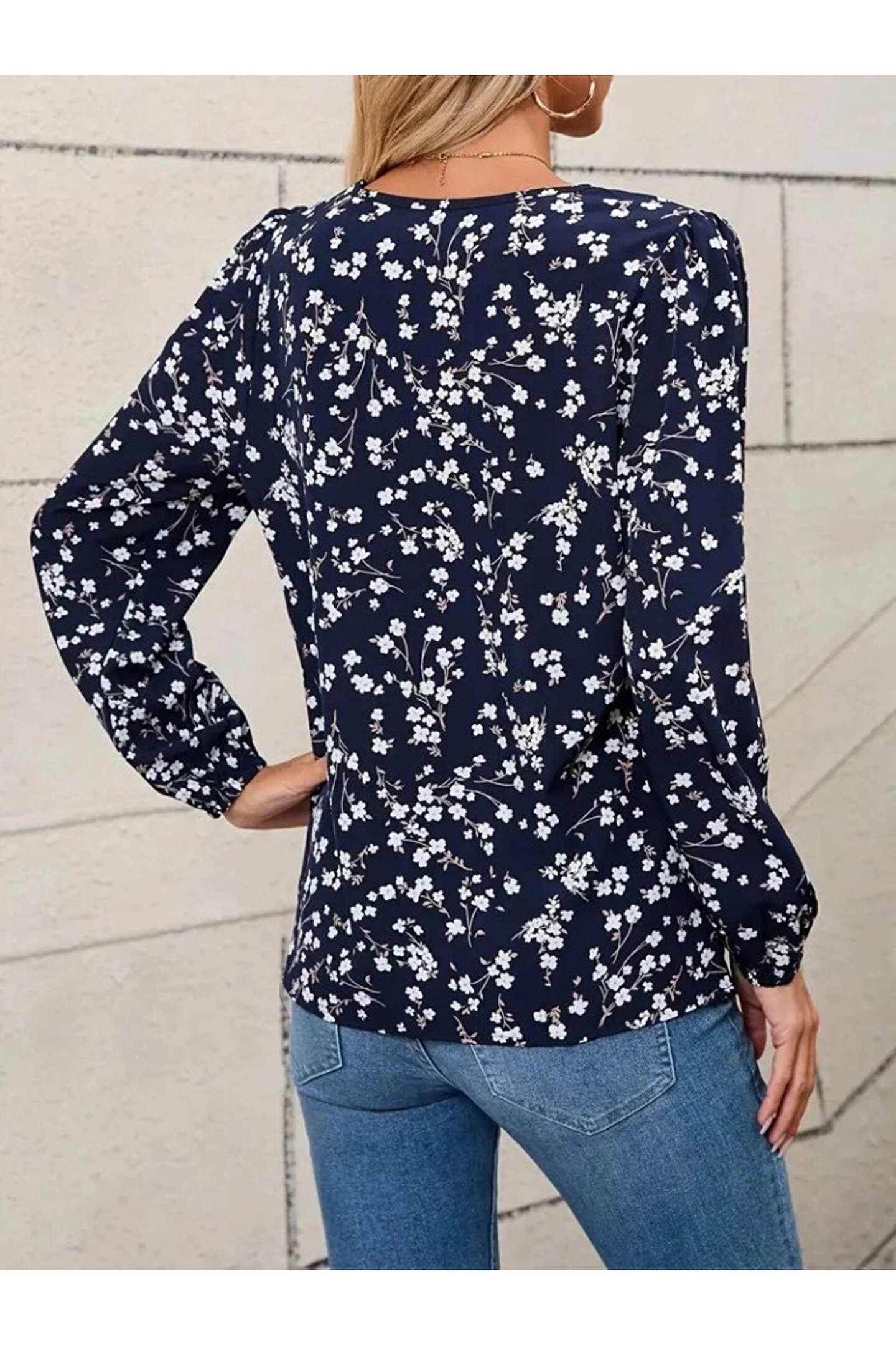 TBL DEKOR Kadın Uzun Kollu V Yakalı çiçek Desenli Modal Bluz