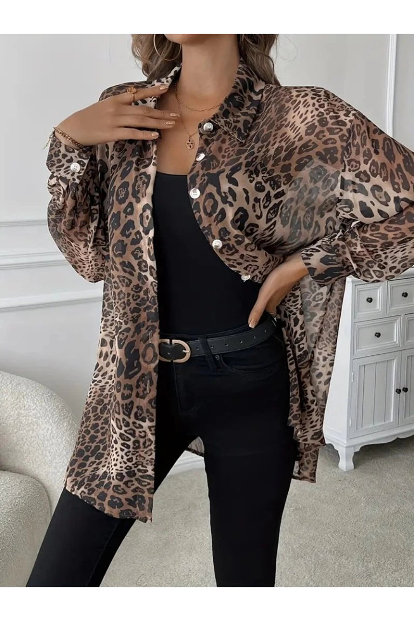 Kadın Uzun Kollu Yakalı önden Düğmeli şifon Gömlek