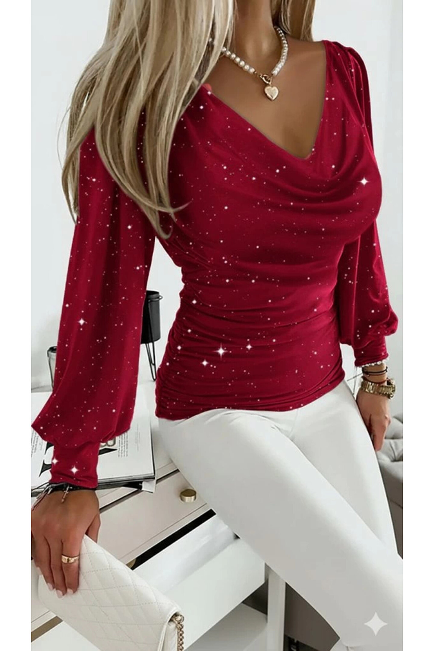 Kadın Uzun Kollu Degaje Yaka Taşlı Sandy Bluz