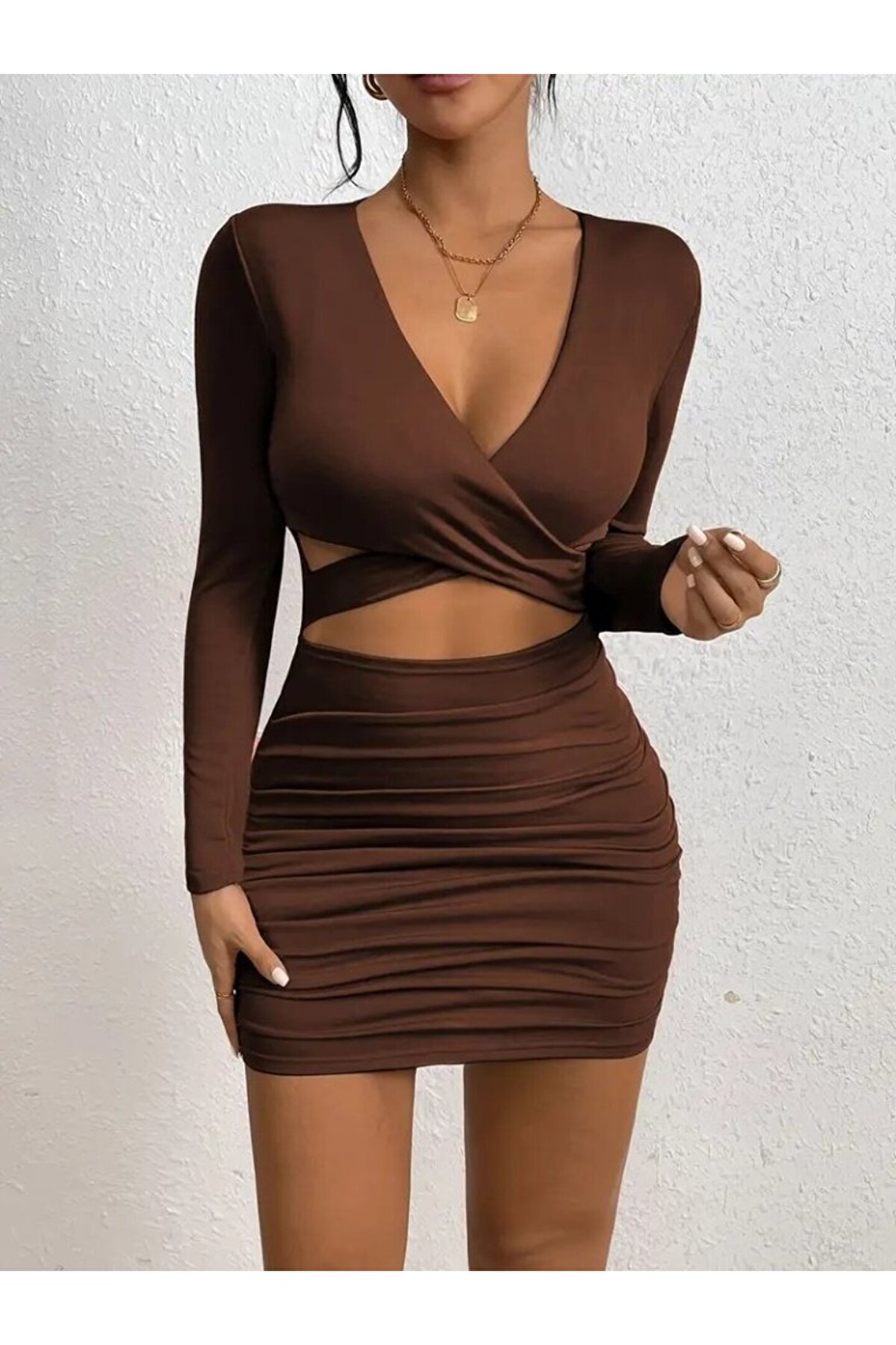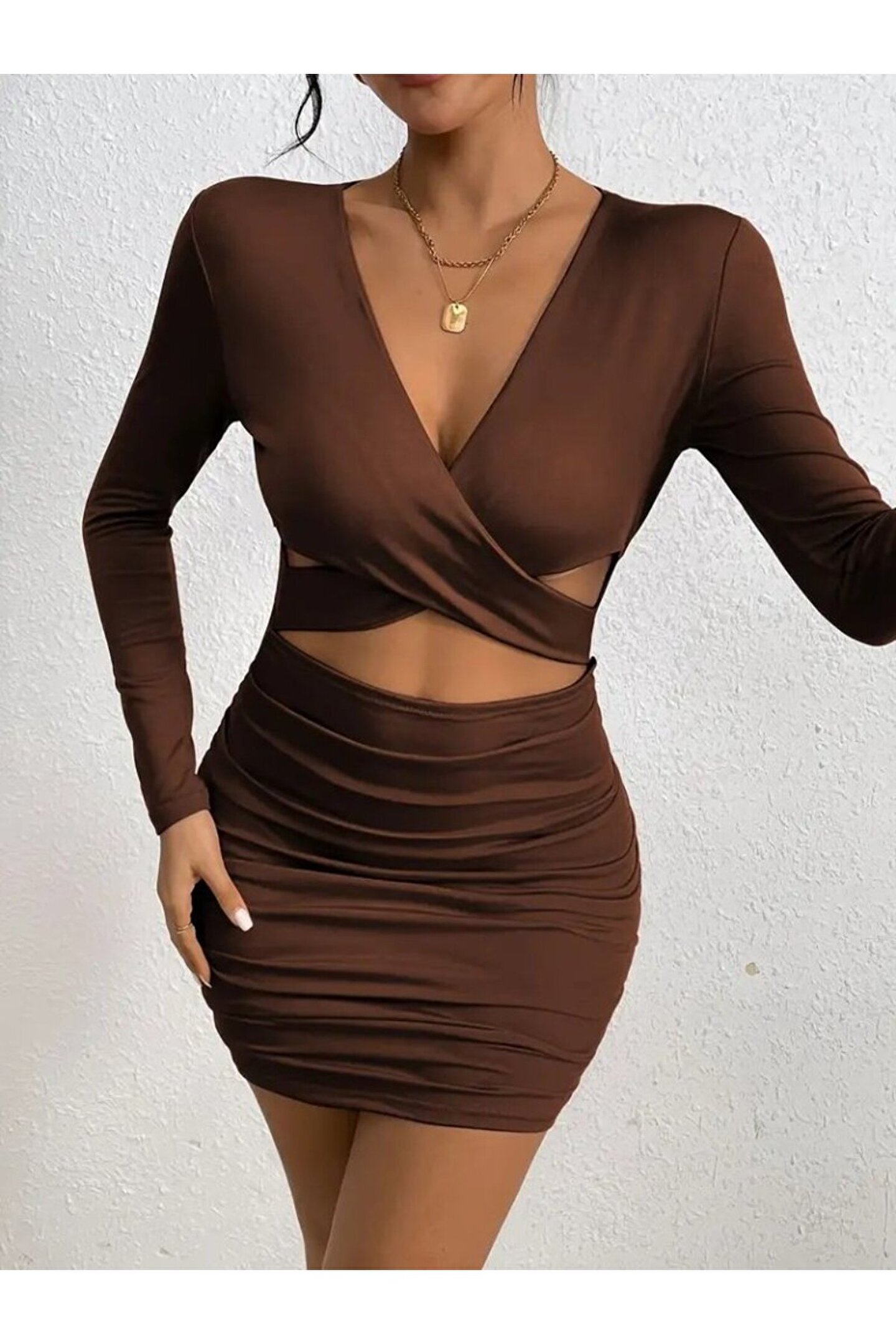 Kadın Uzun Kollu çapraz Dekolte Detaylı Mini Sandy Elbise