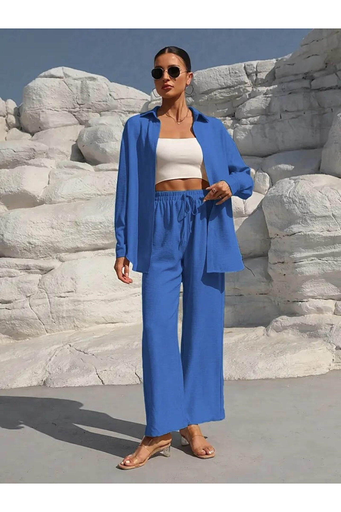 TBL DEKOR VİBE UNİCO Kadın Uzun Kollu önü Açık Dokuma Ceket Ve Pantolon Ikili Takım