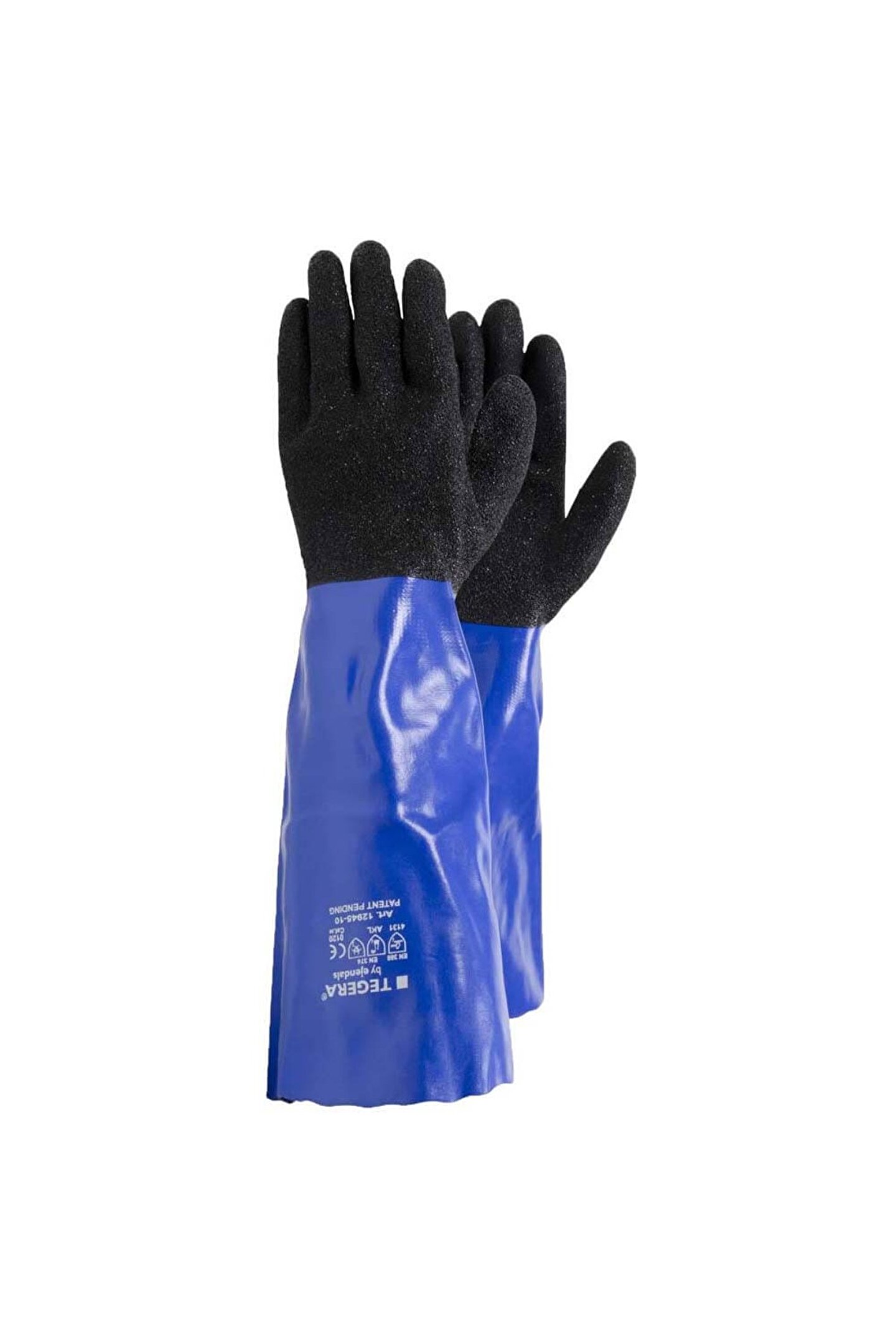 TEGERA İŞ ELDİVENİ 12945 ÖZELLİKLER Kimyasallara karşı koruma, ekstra uzun, ön kıvrımlı parmaklar BİRİNCİL KORUMA Enfeksiyon riski, aşındırıcı yaralanmalar, kirle temas, nemle temas, rutubetle temas, yağ ve gresle temas TEMEL KULLANIM ORTAMLARI Kimyasal risk taşıyan ortamlar, mikrobiyolojik risk taşıyan ortamlar, sağlığa zararlı ortamlar, aşındırıcı ortamlar, ıslak ortamlar, nemli ortamlar, yağ ve gresli ortamlar, kirli ortamlar TEMEL KULLANIM ALANLARI Bina ve inşaat, HVAC tesisatı, inşaat, toprak hazırlama, beton işleri, ulaştırma işleri, metal işleri, madencilik, tarım işleri, denizcilik işleri, balıkçılık sektörü işleri, balıkçılık, petro kimyasal işler, kimyasal işler, kimyasal teknoloji işleri, kağıt sektörü işleri, arıtma, sağlık hizmetleri TEMEL KULLANIM ENDÜSTRİLERİ Agriculture, mining, oil, gas, petrochemical, pulp and paper, chemical, rubber and plastic, metal fabrication, automotive, building and construction İŞ TİPİ Yüksek seviye Eldiven Tipi : Tek kullanımlık ve/veya kimyasallara dirençli eldivenler Kategori : Cat; III Beden (AB) : 8, 9, 10, 11 Malzeme :; Astar Malzemesi : Dikişsiz, Naylon Daldırma Malzemesi : PVC (Vinil) Kalınlık :; İç :; El Becerisi : 5 Tutuş Deseni : Tanecikli Uzunluk Aralığı : 450 mm Renk : Mavi, siyah Karton Başına Kutu :; Kutu Başına Adet :; Paket/Karton Başına Çift : 12/60 AQL : 0; 65 Görüntü :; Malzeme Spesifikasyonu :; Dış Malzeme Spesifikasyonu : Polivinil klorür 100% İç Malzeme Spesifikasyonu : Naylon 100% Antibakteriyel / Biyosidal İşlemi : Pritiyon çinko (CAS numarası 13463; 41; 7) Modeli: Kimyasal Eldiven;;