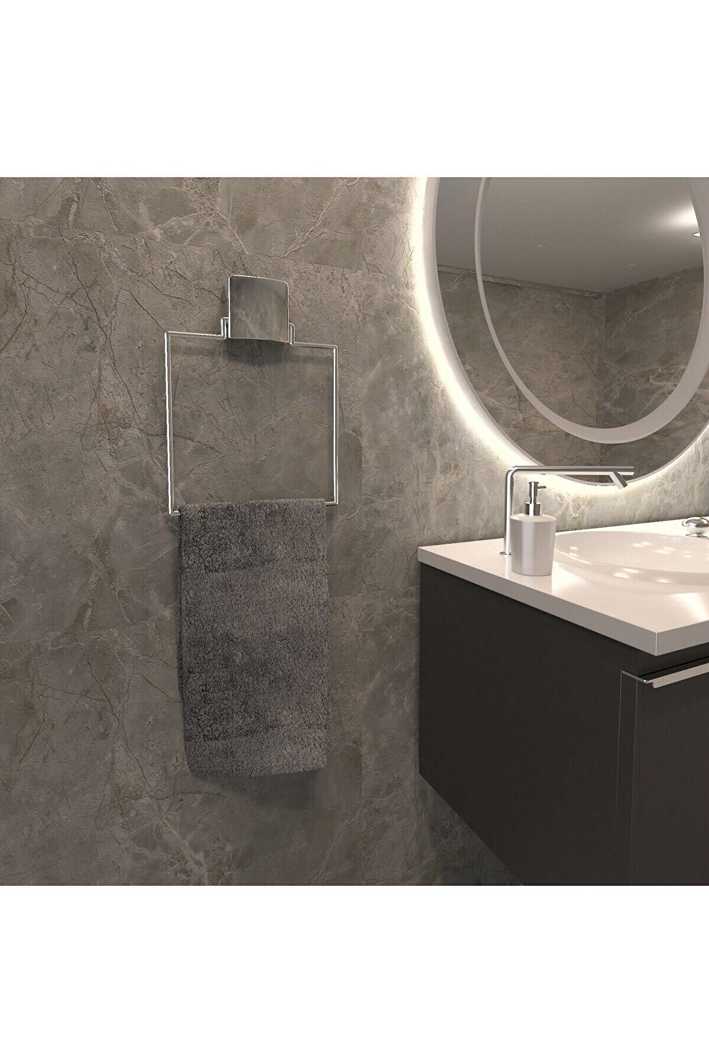 Bej Dekoratif Yapıştırmalı Banyo Mutfak Metal Kare Havluluk Askı Krom Pratik Vidasız Montaj Dc-4780
