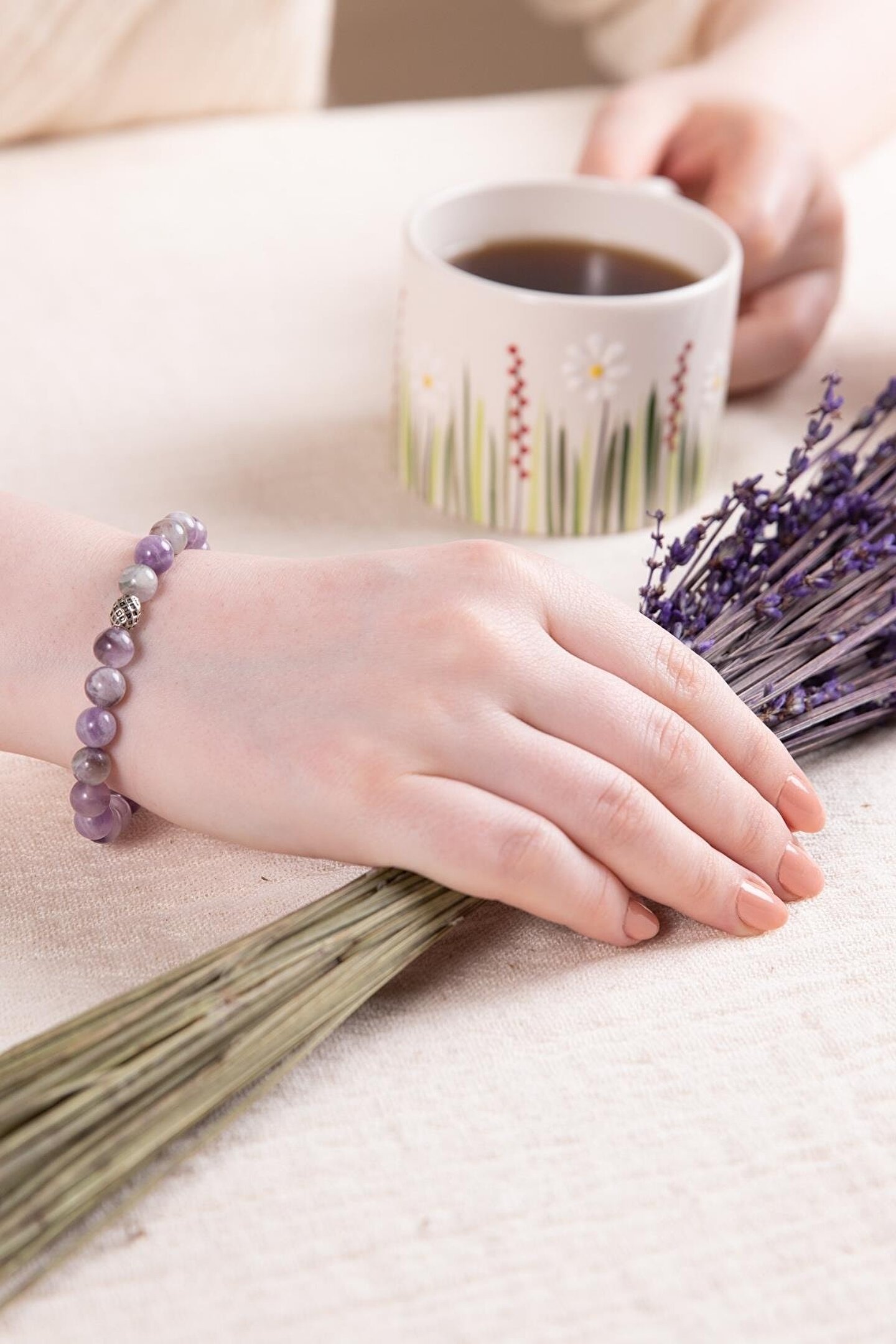 Doğal taş kullanımı sayesinde her bileklik benzersiz ve otantik bir görünüm sunar; Ametist taşı, şıklığı ve zarafetiyle dikkat çekerken, gümüş rengi ile modern bir dokunuş sağlar; Doğal taş materyali, bilekliğin hem dayanıklı hem de estetik olmasını garanti eder; Ametist taşı, enerjiyi dengelemeye yardımcı olduğu bilinen bir taştır ve bu özelliği ile kişisel bakımınıza katkıda bulunur;