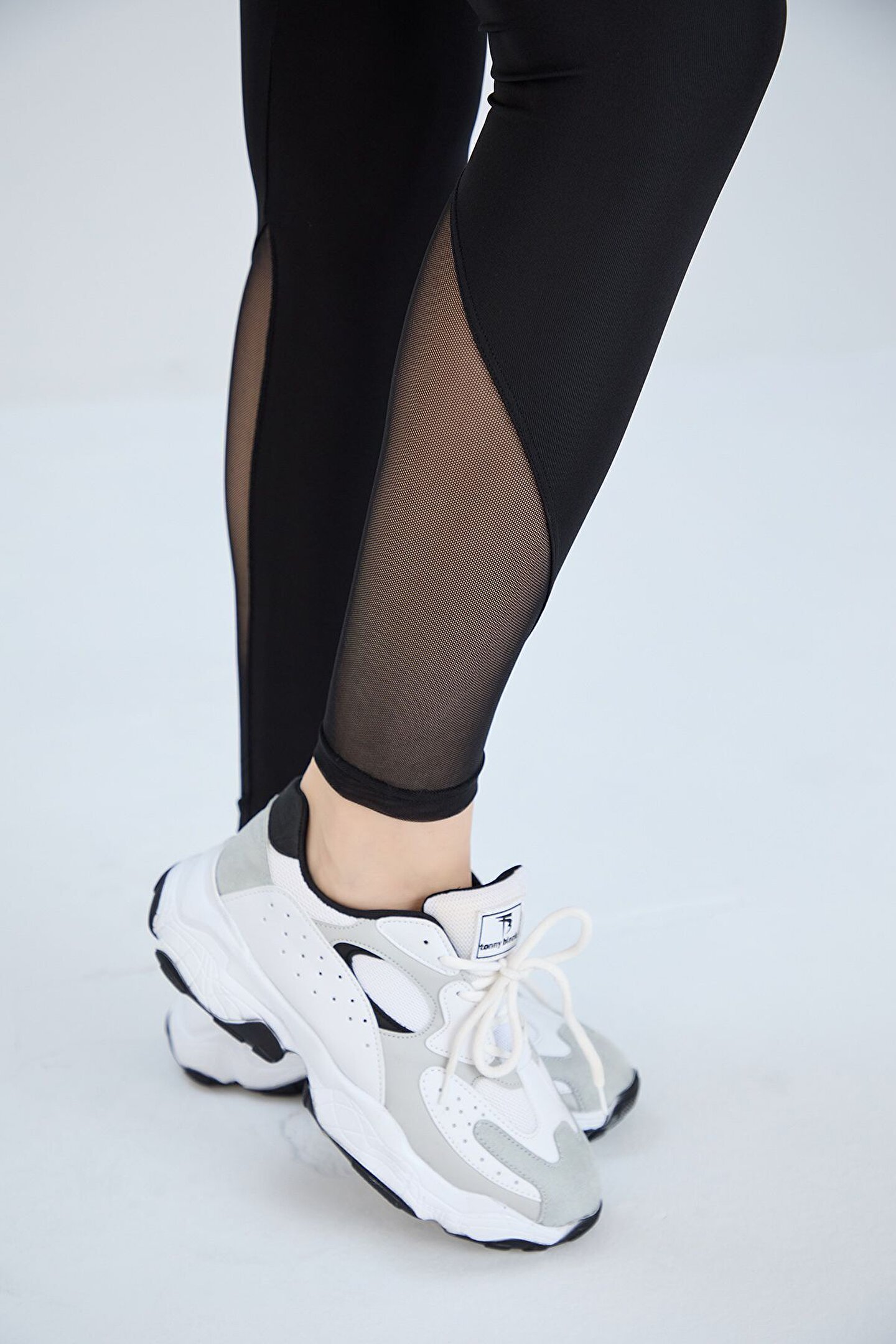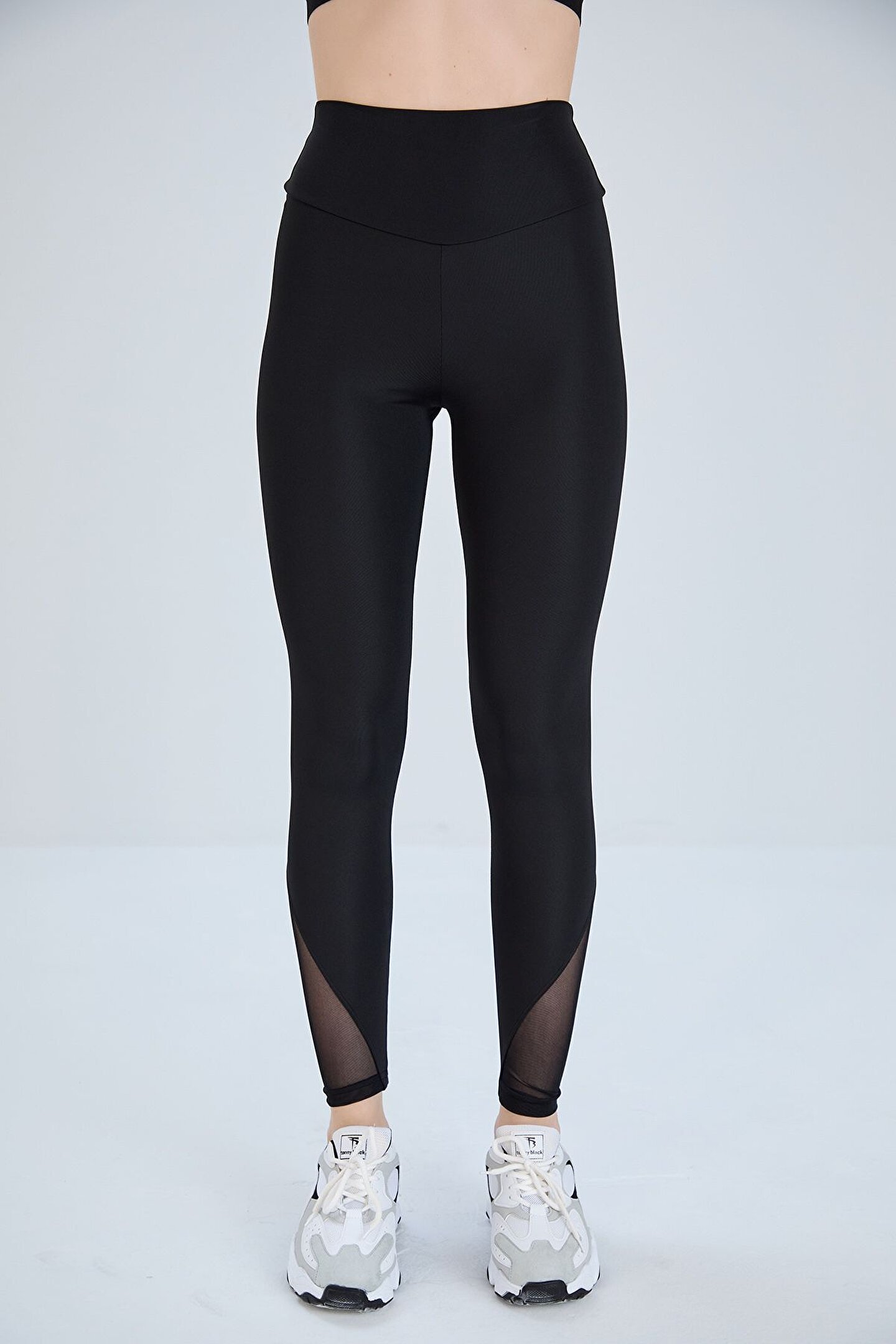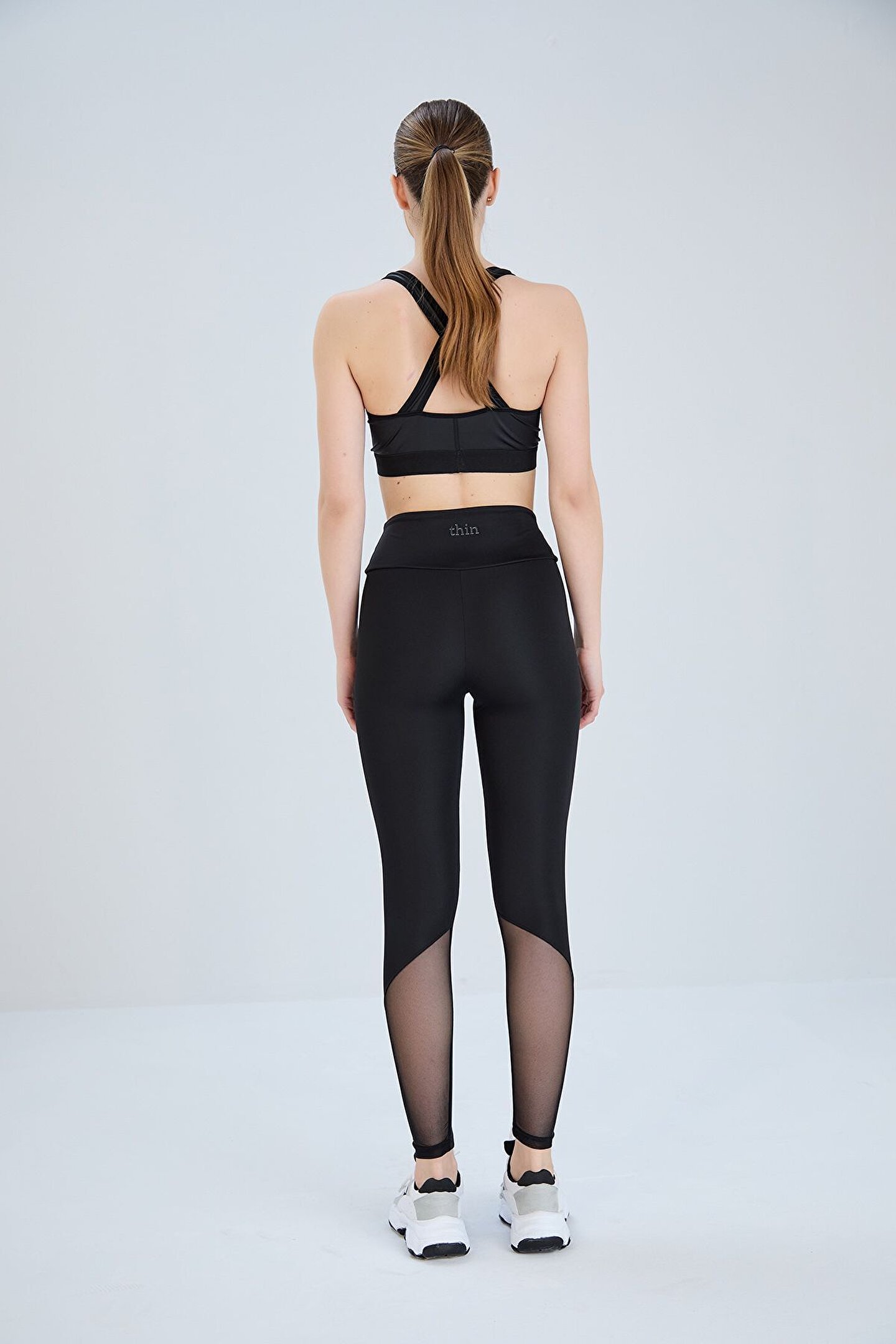 Thin Shop Siyah, Tül Detaylı Sporcu Taytı İnceltici Ve Sıkılaştırıcı