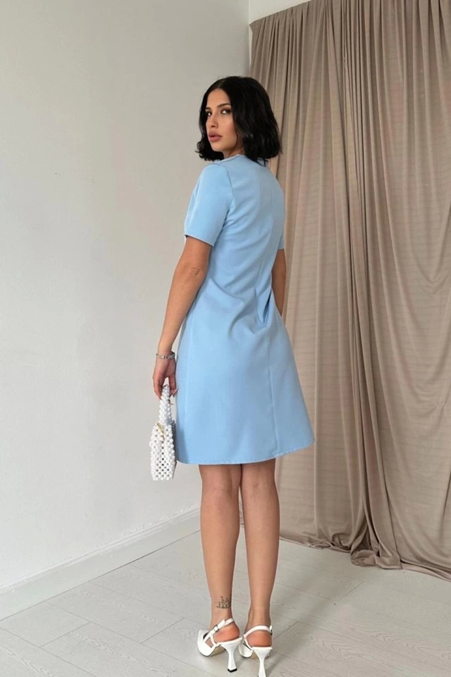 TİANA Mavi Kısa Kol Atlas Mini Elbise