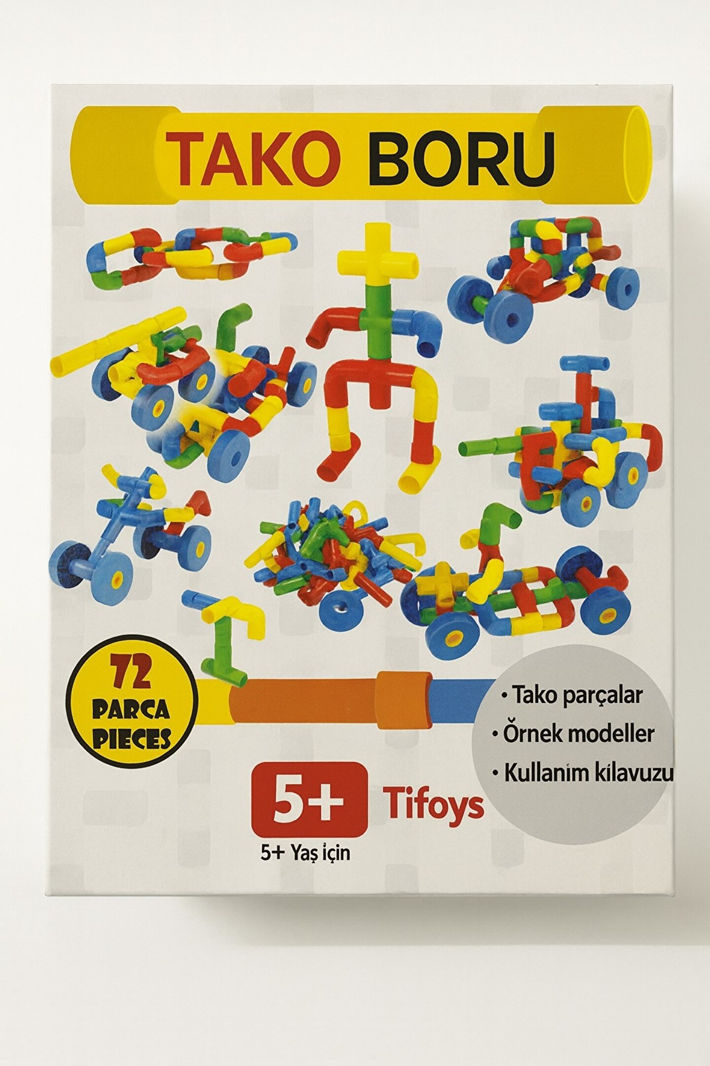 Bağla, Birleştir, Tasarla! Hayal Gücünü İnşa Eden Bağlantı Oyunu Tako Boru, çocukların hayal gücünü çalıştıran bir yapı-kurma ve bağlantı oyunudur.; Renkli boru parçaları ile araba, hayvan, robot, köprü gibi sınırsız modeller tasarlanabilir.; Hem motor becerileri hem de görsel düşünmeyi en eğlenceli şekilde geliştirir!