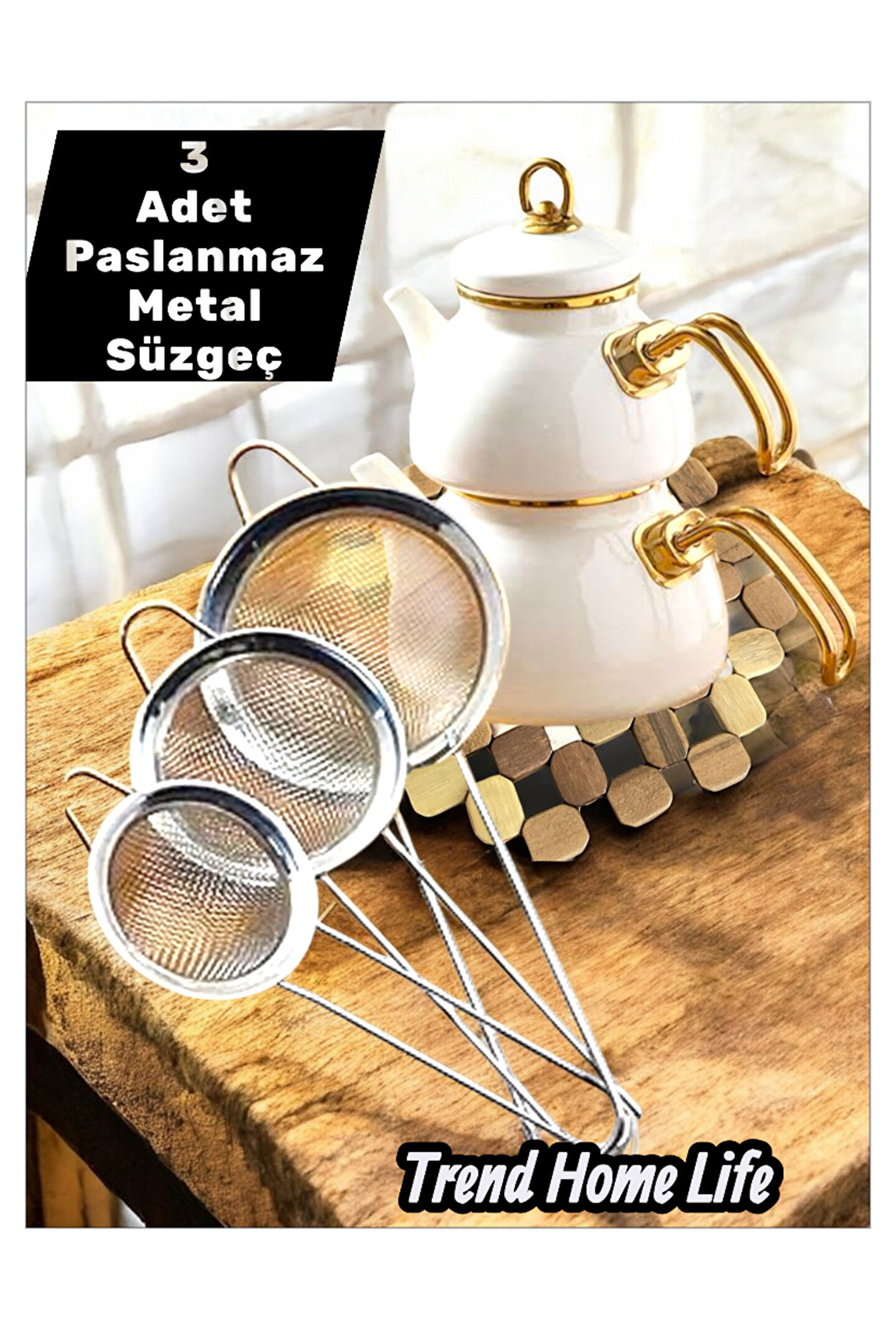 Trend Home Life Çay Süzgeci Paslanmaz Metal Çay Süzgeci Bitki Çayı Demleme Süzgeci 3 Lü Seti Çok ince tel ağın partikülleri sıvıdan filtrelemesine izin verin.; Ömür boyu için profesyonel kalite 3 farklı boyda.; Çayları, bitki çaylarını, kakaoları, kokteylleri, limon sularını süzmek için mükemmel ideal boyut Sağlam kıvrımlı sert örgü yapısı, esnektir ve diğer çift gözlü tasarımların yanı sıra sergilerken de formunu korur.; Tüm kaynaklar ve bağlantılar kalite ve dayanıklılık açısından test edilmiştir.; Kararma Yapmaz, Paslanmaz uzun süre kullanılabilir Elde ve bulaşık makinenizde güvenle yıkayabilirsiniz.; Ürün Ölçüleri: ; 1 Adet Büyük boy (Çap: 8,5 cm Uzunluk: 21cm ; 1 Adet Orta Boy (Çap:7 cm Uzunluk: 20cm ) 1 Adet Küçük Boy (Çap: 5,5 cm Uzunluk: 17 cm ) Ürün Rengi: Metalik Ürün Malzemesi: Paslanmaz Metal ; Paket İçeriği: 3 Farklı boyda 3 adet çay ve bitki çayı süzgeci bulunmaktadır küçük orta ve büyük